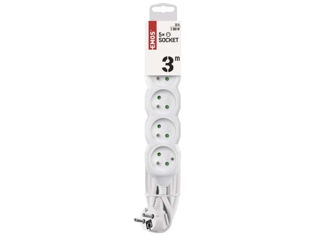 Prodlužovací kabel 3 m / 5 zásuvek / bílý / PVC / 1 mm2