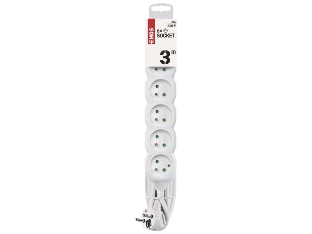 Prodlužovací kabel 3 m / 6 zásuvek / bílý / PVC / 1 mm2