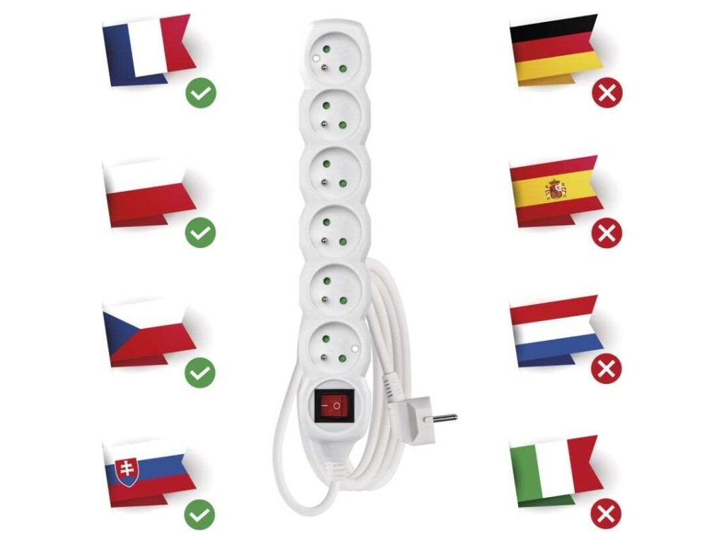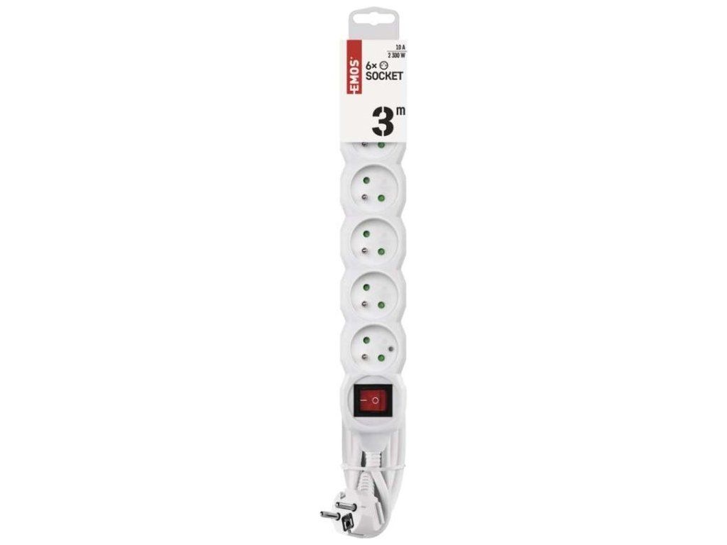 Prodlužovací kabel 3 m / 6 zásuvek / s vypínačem / bílý / PVC / 1 mm2