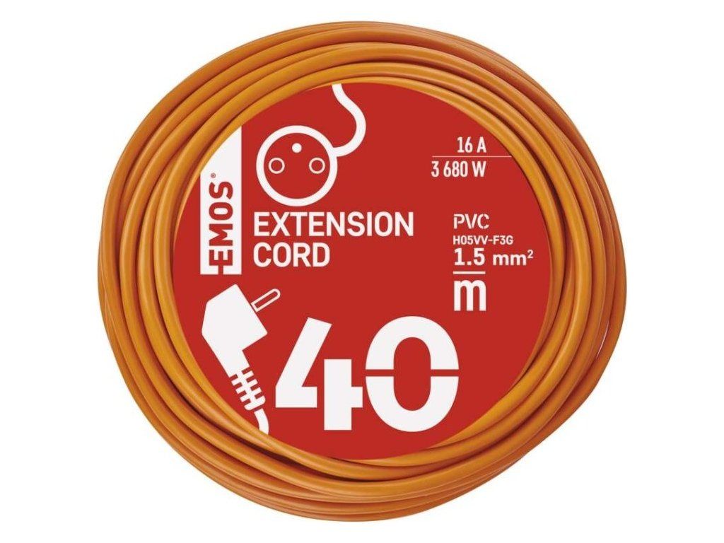 Prodlužovací kabel 40 m / 1 zásuvka / oranžový / PVC / 230 V / 1,5 mm2