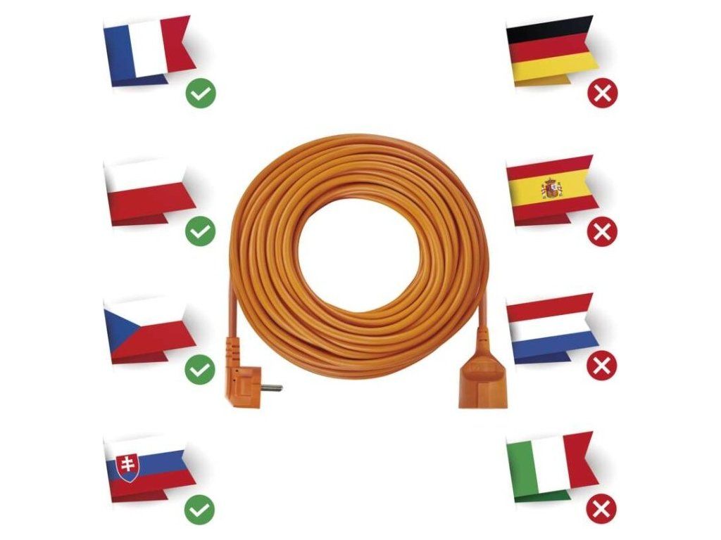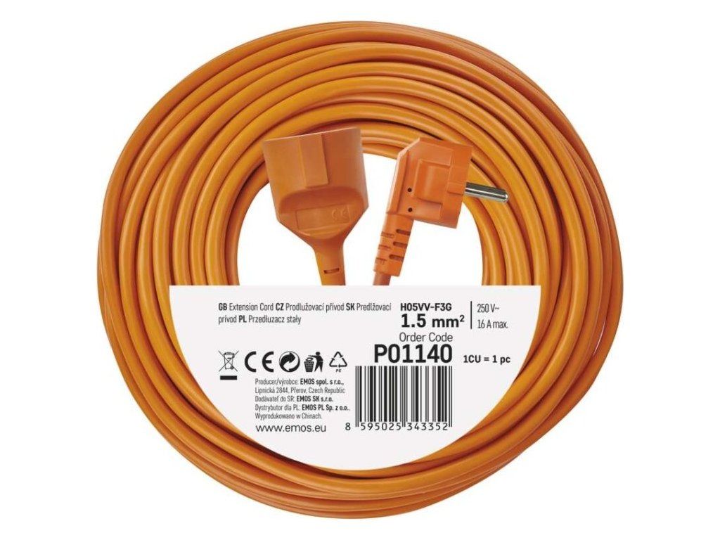 Oranžový prodlužovací přívod s jednou zásuvkou - spojka, délkou 40m a průřezem vodiče 1,5 mm2. Vhodný pro maximální zátěž 16 A max.Prodlužovací přívod 40 m na 230 V~ slouží k prodloužení elektrické energie tam, kam pevná zásuvka nedosáhne.