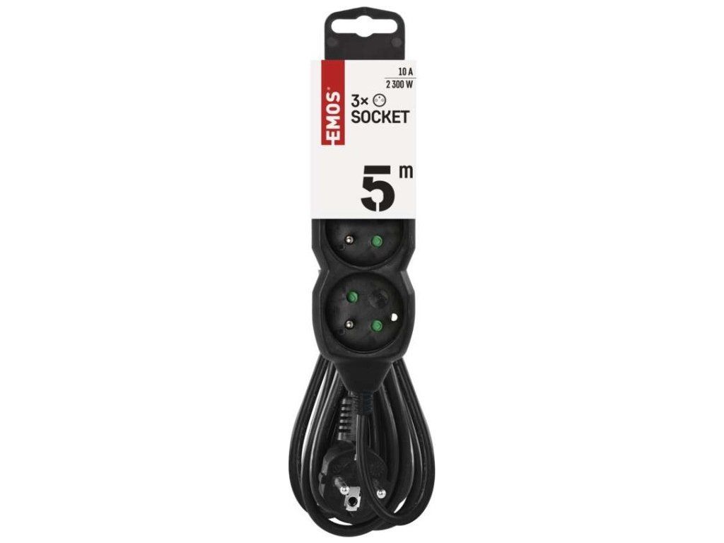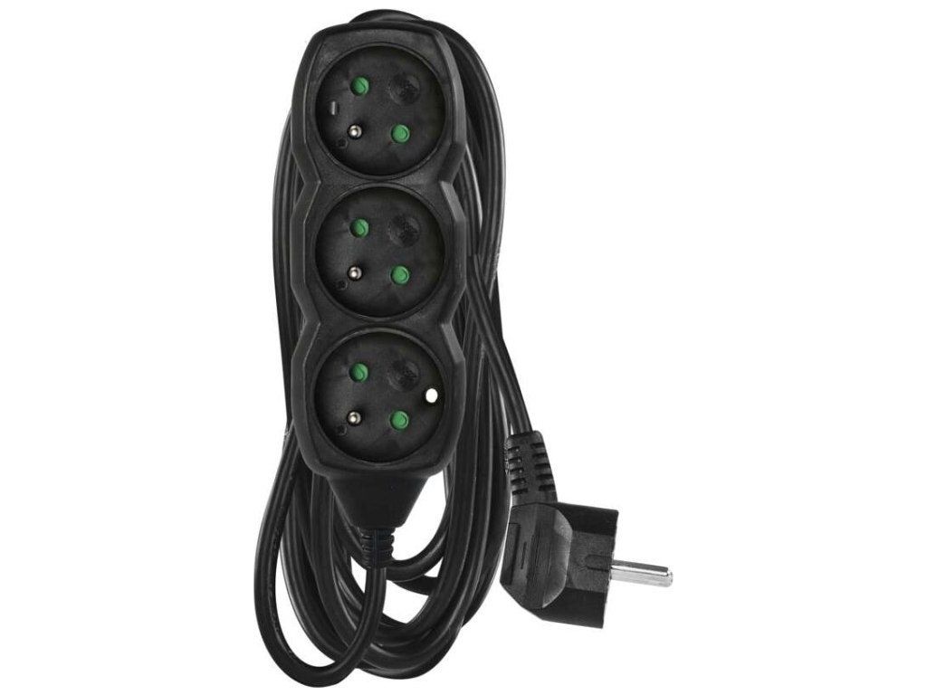 Prodlužovací kabel 5 m / 3 zásuvky / černý / PVC / 1 mm2