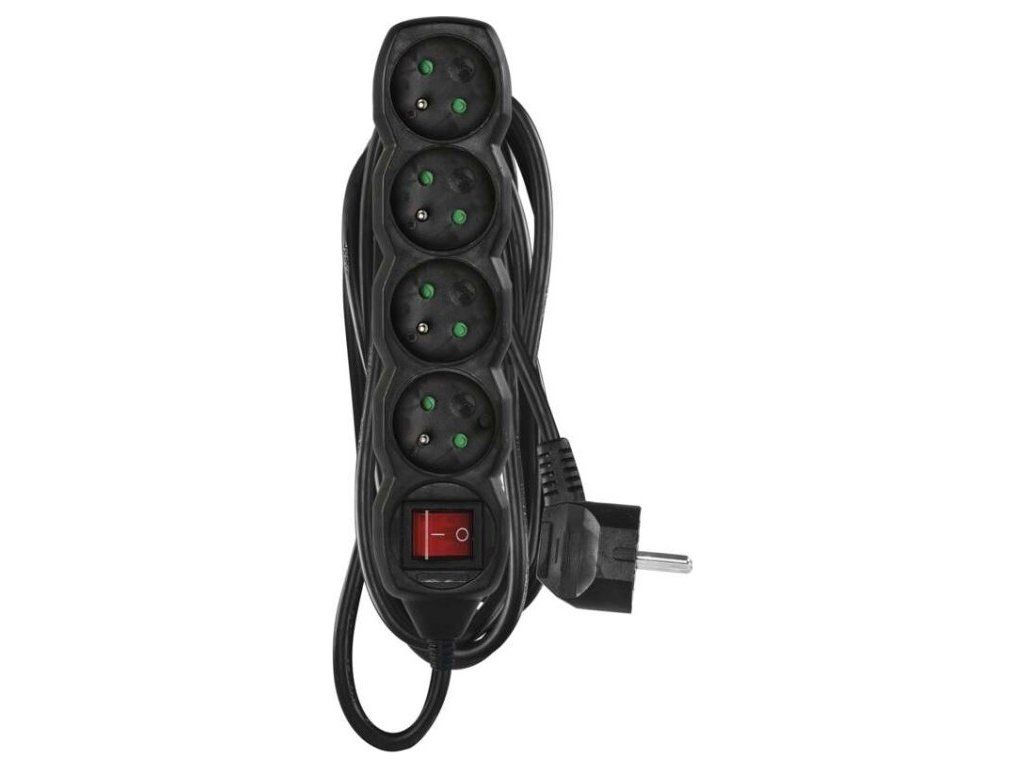 Prodlužovací kabel 5 m / 4 zásuvky / s vypínačem / černý / PVC / 1,5 mm2