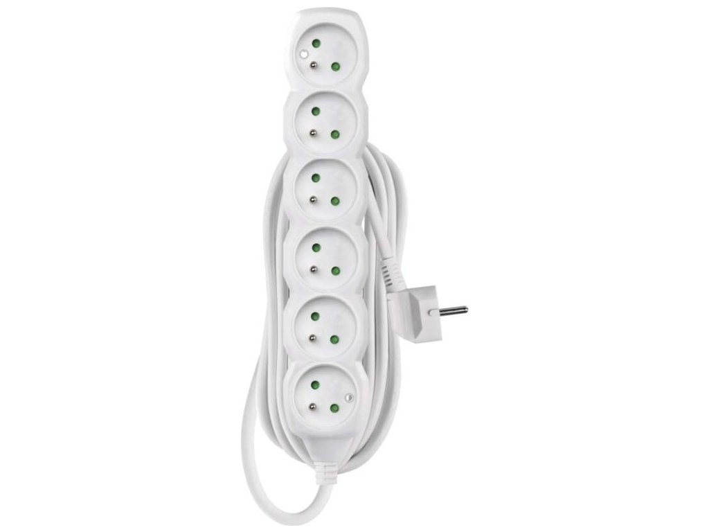 Prodlužovací kabel 5 m / 6 zásuvek / bílý / PVC / 1 mm2