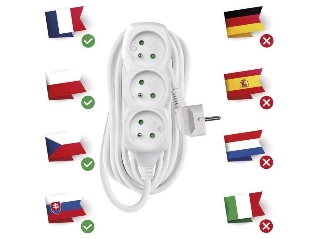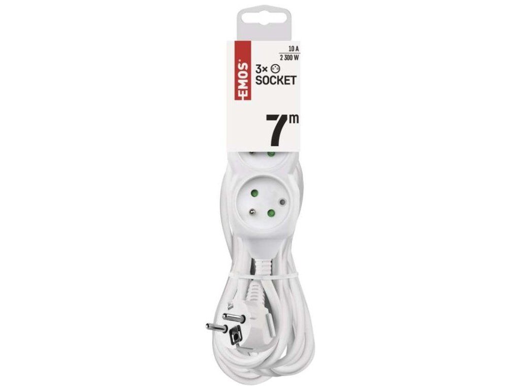 Prodlužovací kabel 7 m / 3 zásuvky / bílý / PVC / 1 mm2