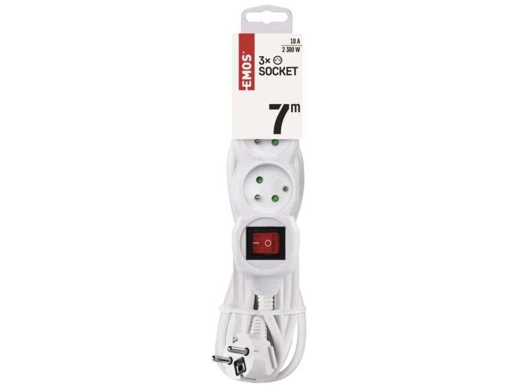Prodlužovací kabel 7 m / 3 zásuvky / s vypínačem / bílý / PVC / 1 mm2