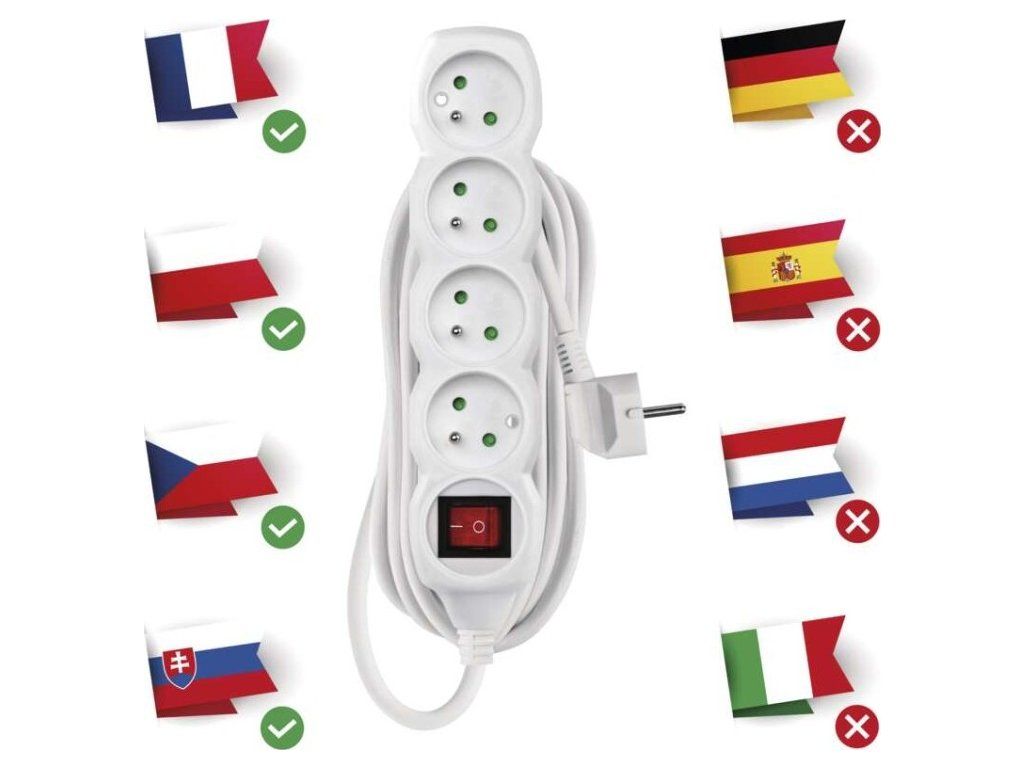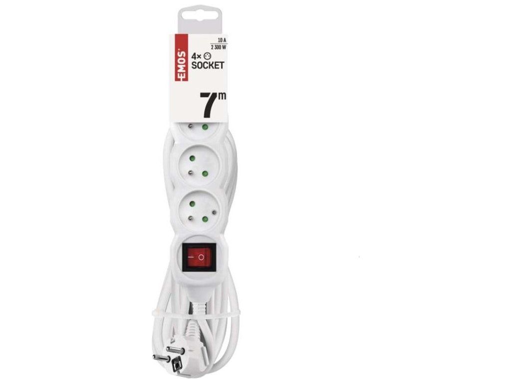 Prodlužovací kabel 7 m / 4 zásuvky / s vypínačem / bílý / PVC / 1 mm2