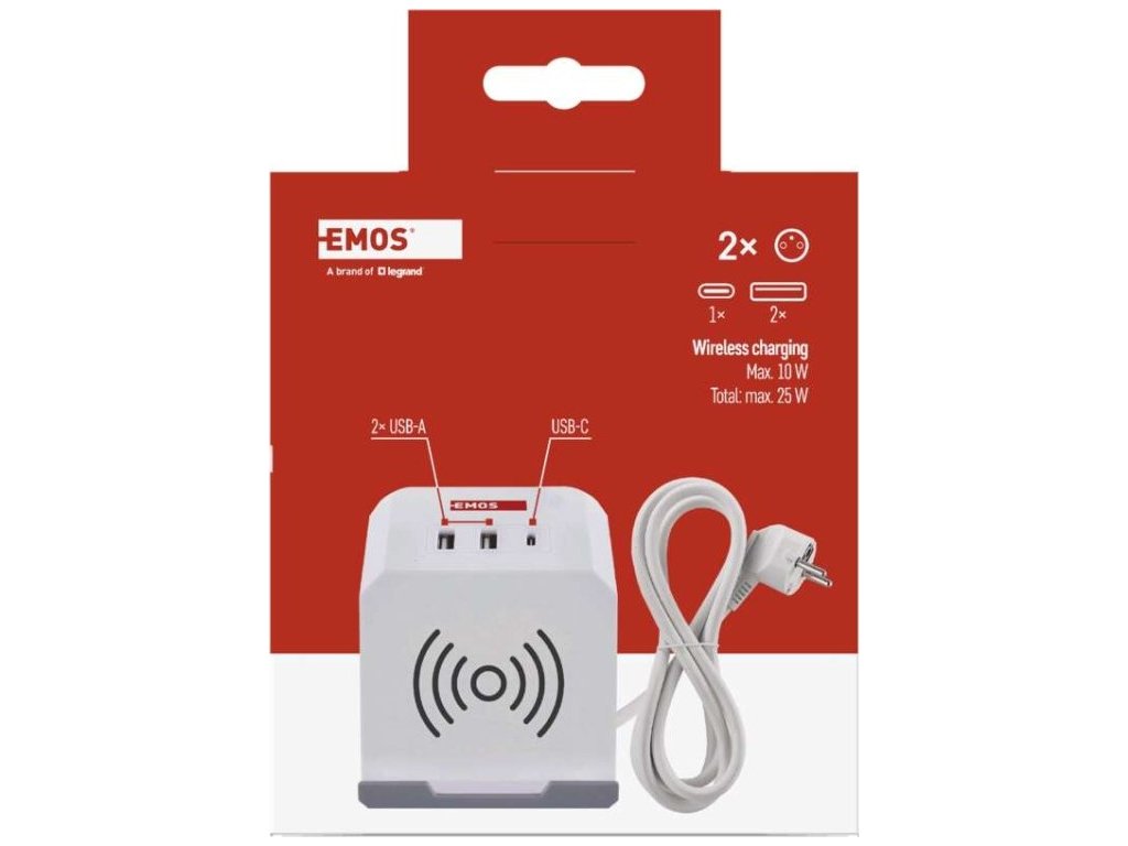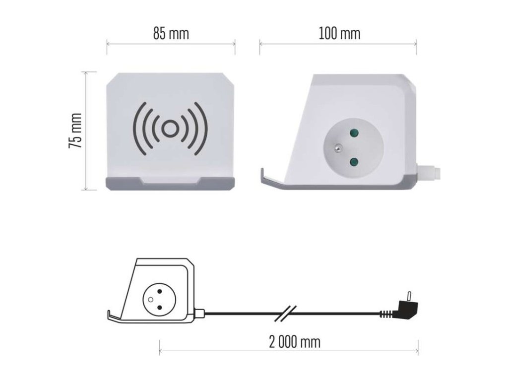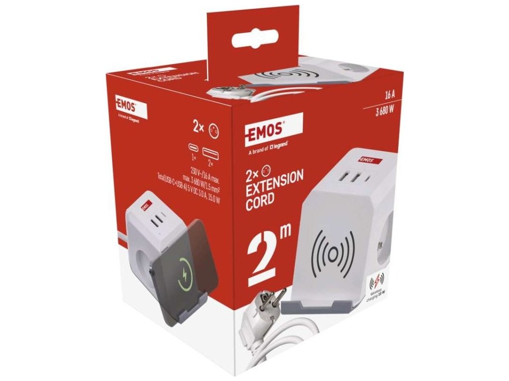Kompaktní a praktický prodlužovací přívod s bezdrátovou nabíječkou 10 W. 250V~/16A max. 2 zásuvky s dětskými clonkami. USB 2×A+1×C 3 A, 15 W max. Délka přívodního kabelu 2 m. Vodič H05VV-F3G 1,5mm2.Nabíjejte svůj chytrý telefon efektivně bez připojování kabelu díky bezdrátové nabíjecí stanici nebo pomocí integrovaných USB nabíječek typu A a typu C.