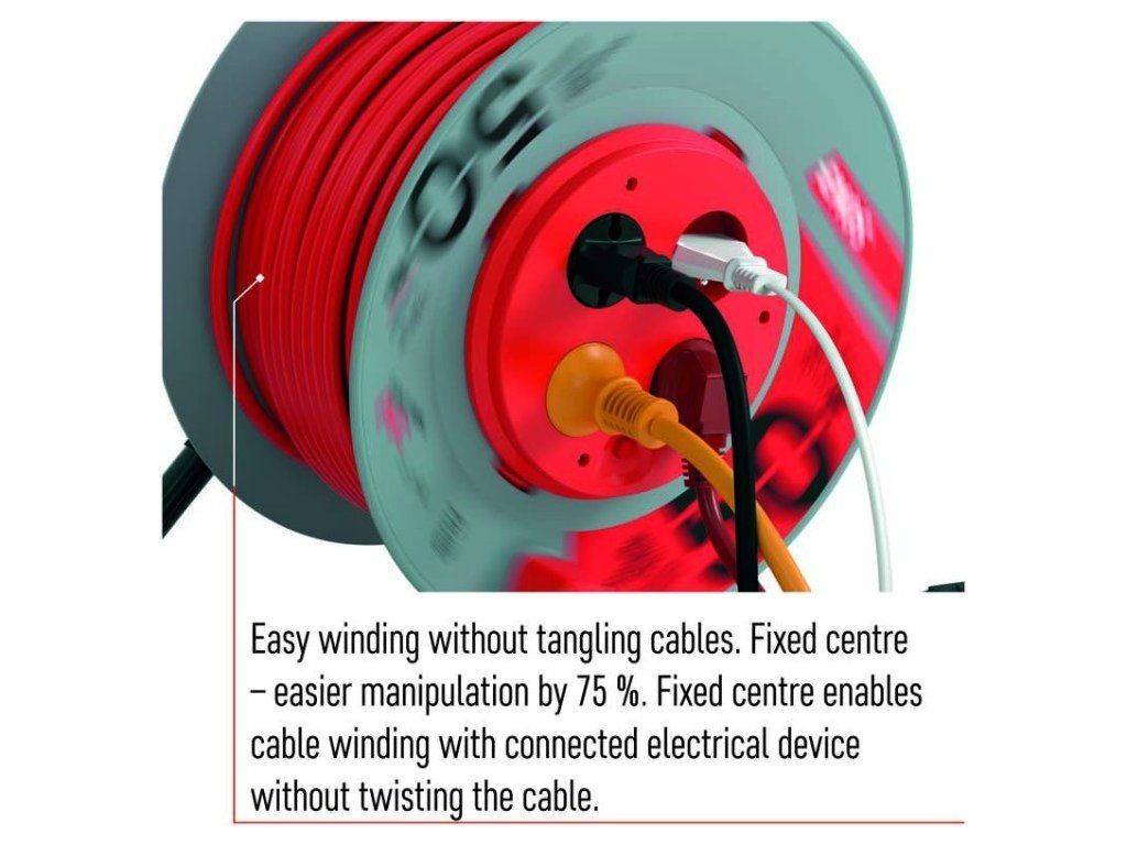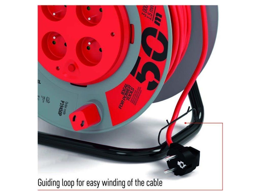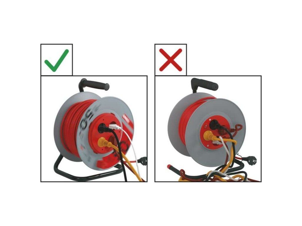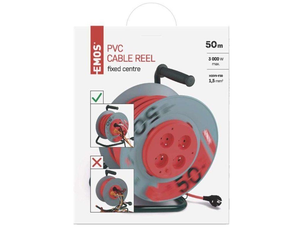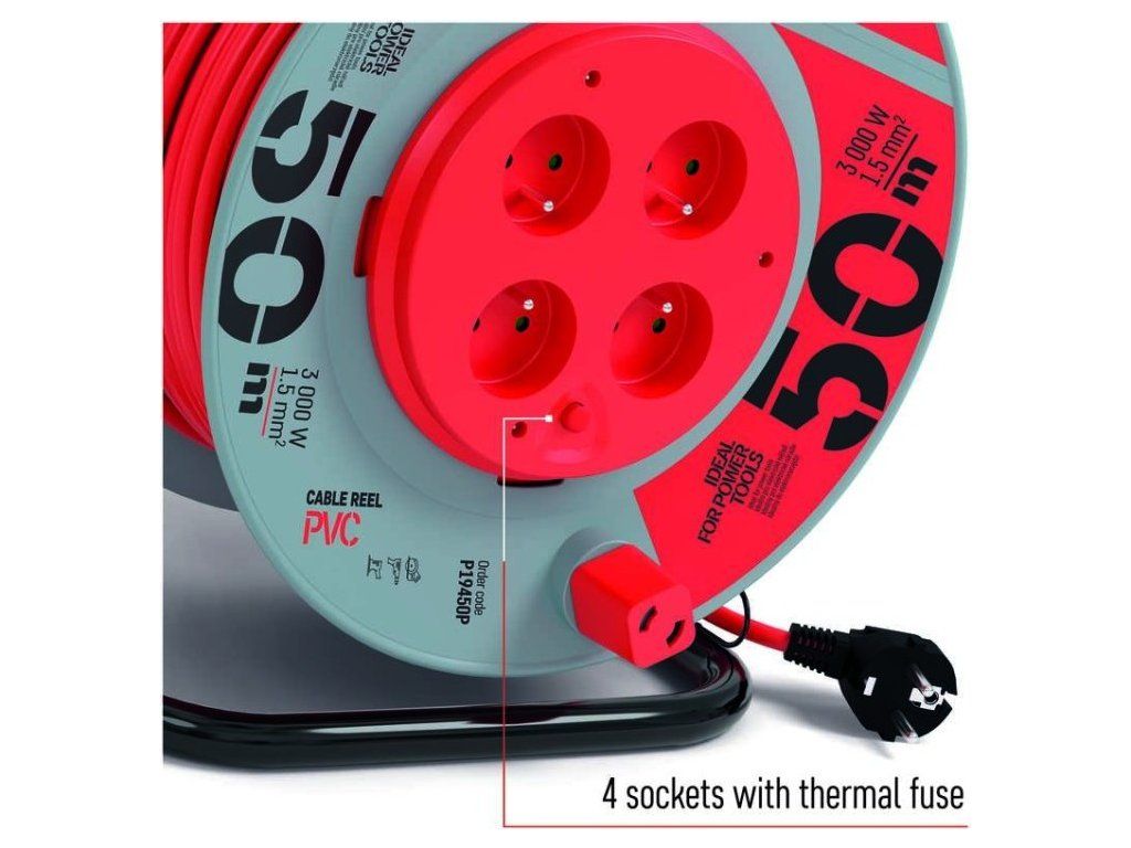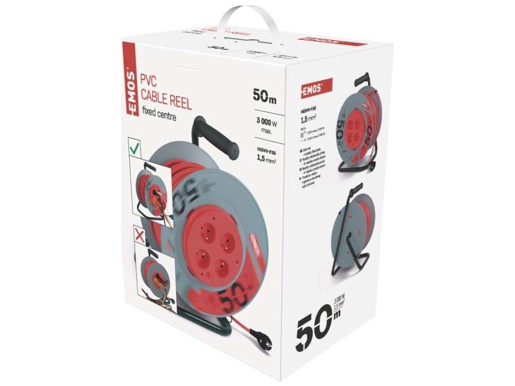 Naviják prodlužovacího přívodu s fixovaným středem. 4 zásuvky 230V~. Délka prodlužovacího přívodu 50m. Vodič PVC - H05VV-F3G 1,5mm2. Naviják má fixovaný střed což je obrovskou výhodou při manipulaci (rozmotávání/namotávání) s připojenými spotřebiči. Kvalitní naviják prodlužovacího přívodu. Je ideální pro prodloužení napájecí sítě 230V~. Jeho výhodou je pohodlná manipulace díky bubnu.
