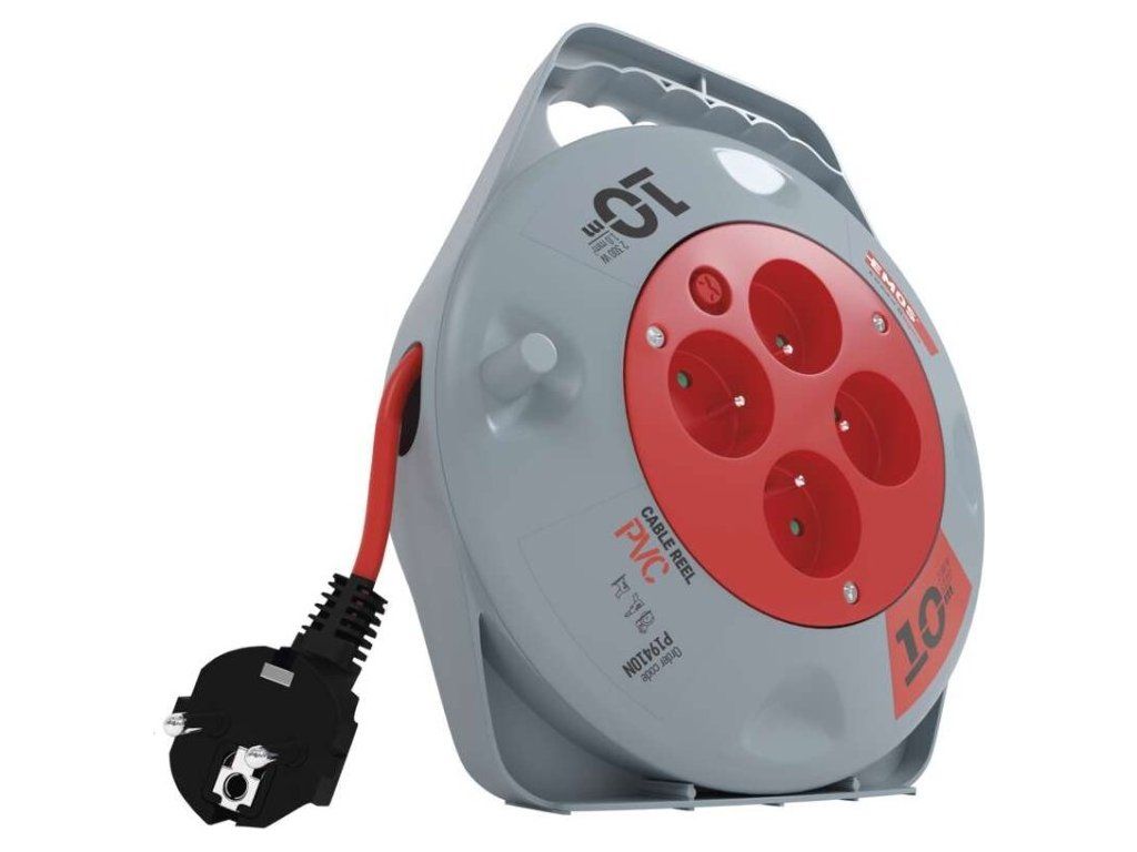 Prodlužovací kabel na bubnu 10 m / 4 zásuvky / červený / PVC / 230 V / 1 mm2