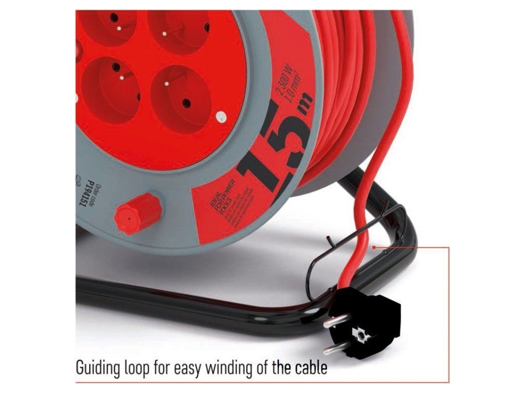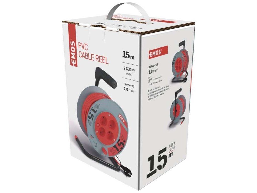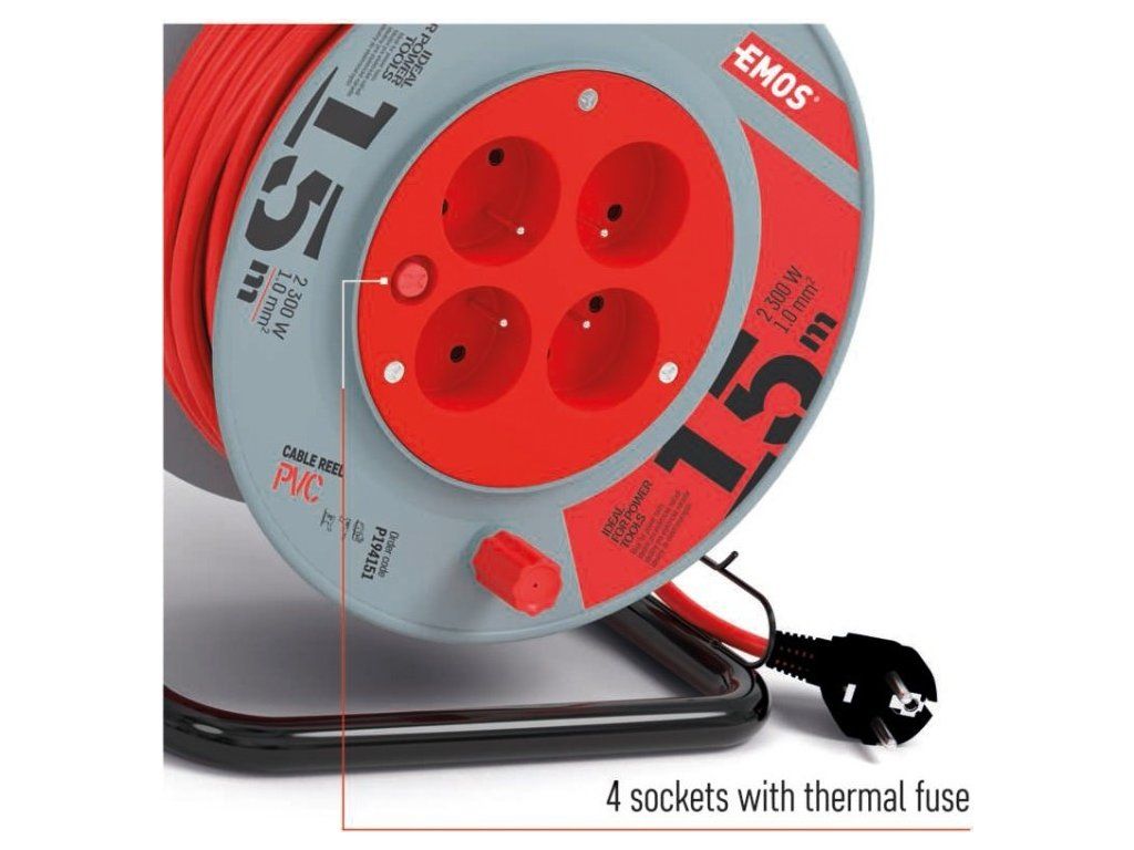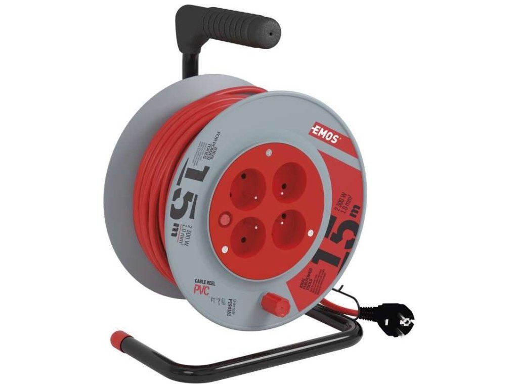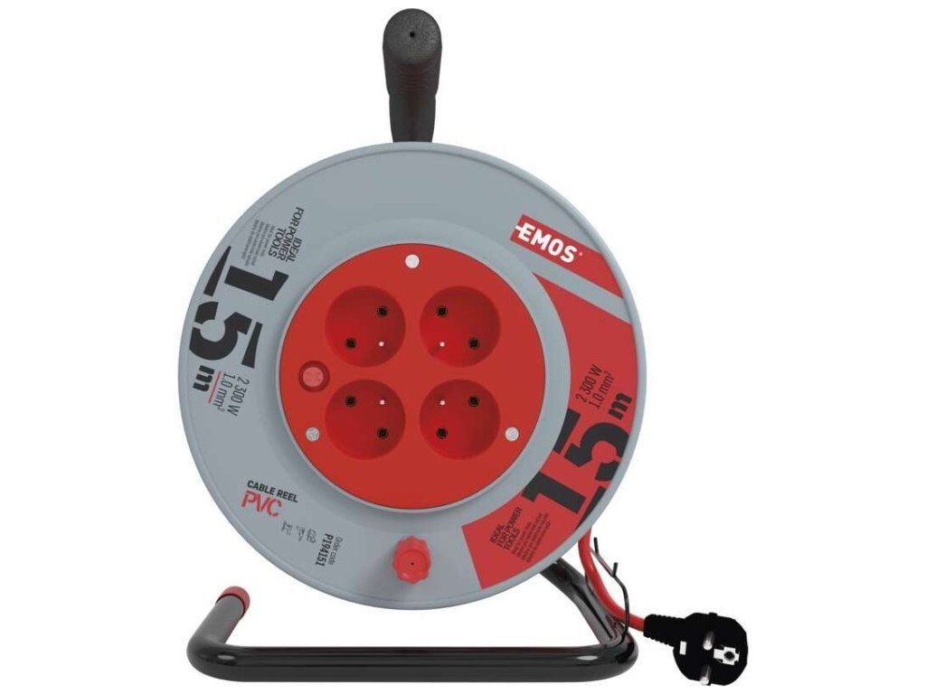 Prodlužovací kabel na bubnu - 4 zásuvka s délkou 15 m, průřezem vodiče 1 mm2 a tepelnou pojistkou. Vhodný pro maximální zátěž 10 A max. / 2300 W při plně rozvinutém stavu a 4,8 A max. / 920 W navinutý. Kvalitní naviják prodlužovacího přívodu. Je ideální pro prodloužení napájecí sítě 230V~. Jeho výhodou je pohodlná manipulace díky bubnu.