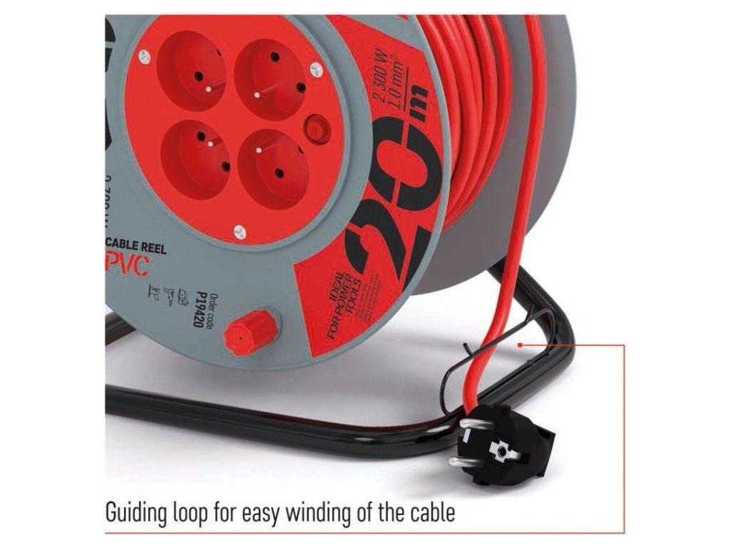 Kvalitní naviják prodlužovacího přívodu. Je ideální pro prodloužení napájecí sítě 230V~. Jeho výhodou je pohodlná manipulace díky bubnu.