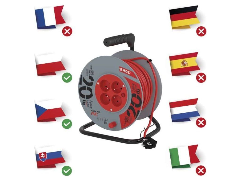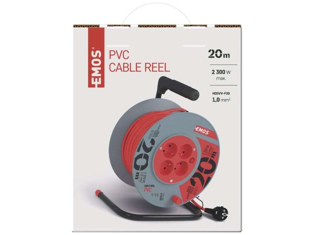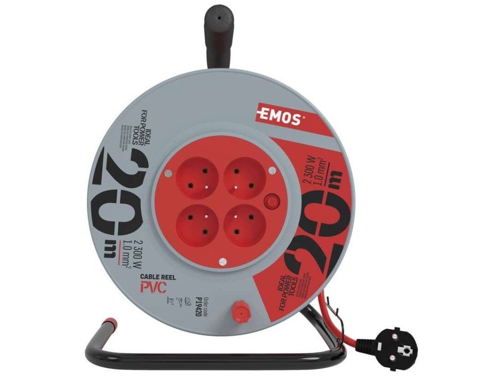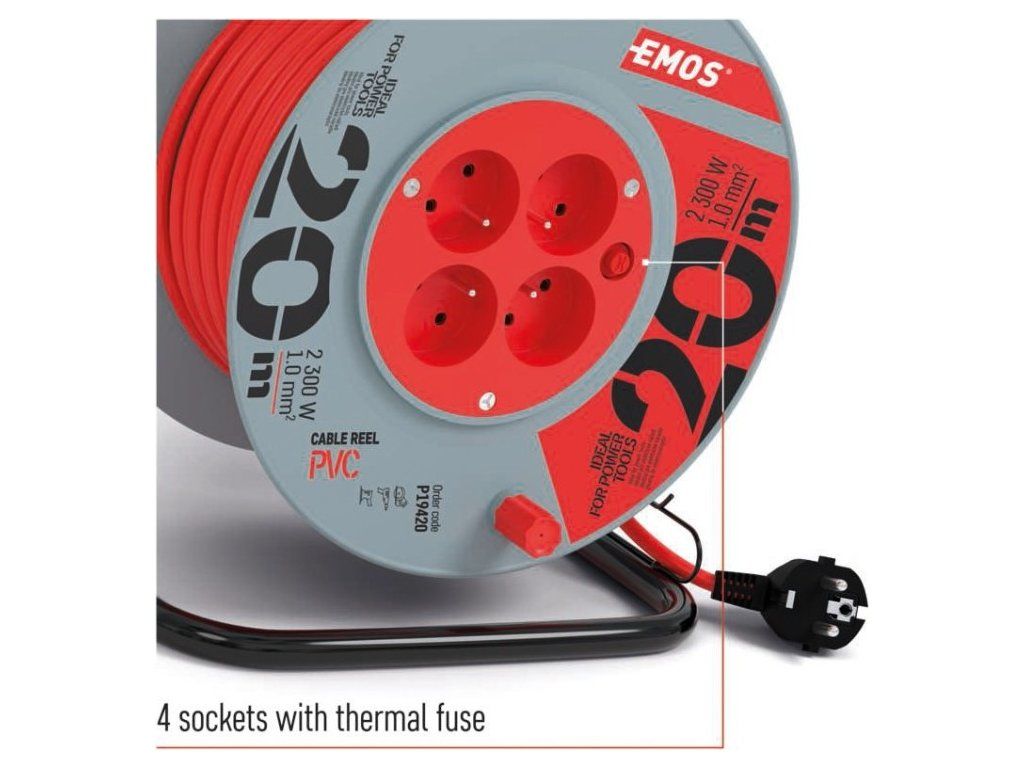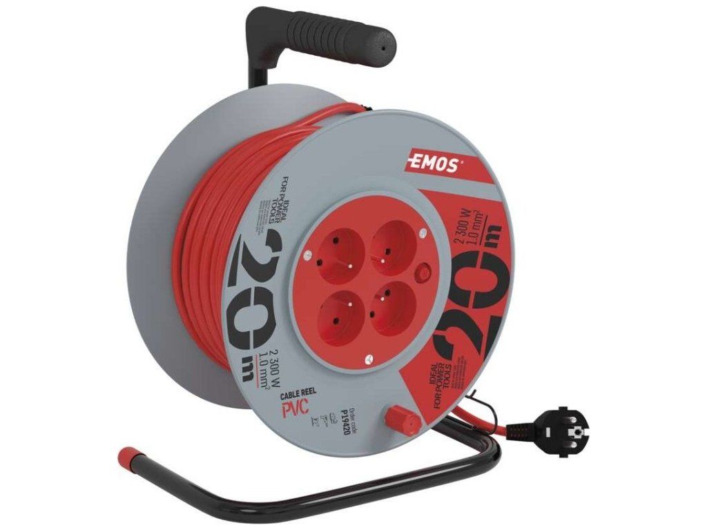 Prodlužovací kabel na bubnu 20 m / 4 zásuvky / červený / PVC / 230 V / 1 mm2