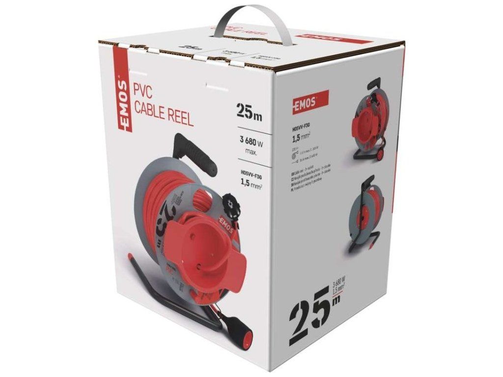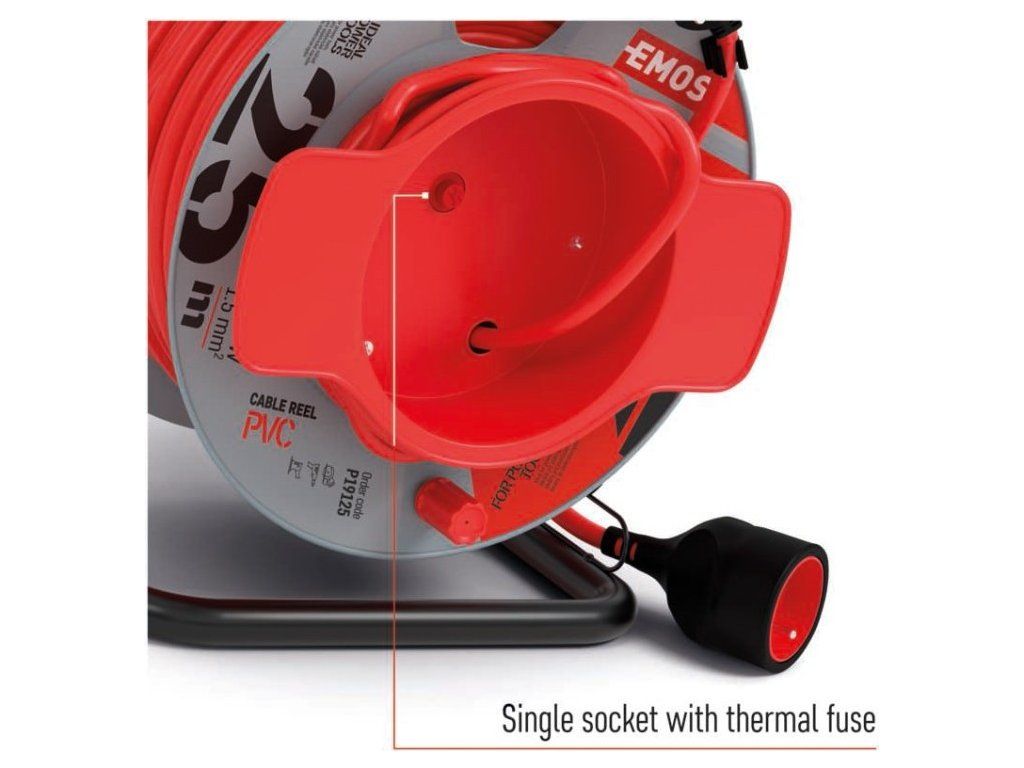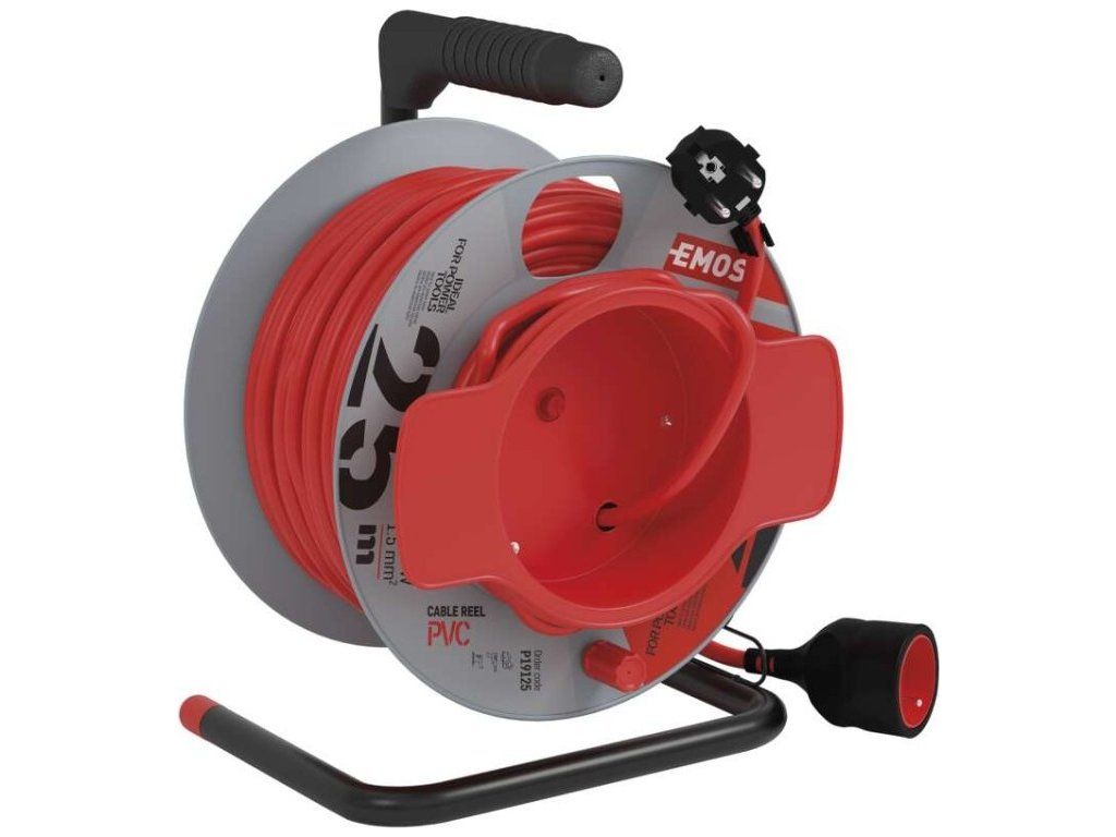 Prodlužovací kabel na bubnu 25 m / 1 zásuvka / červený / PVC / 230 V / 1,5 mm2
