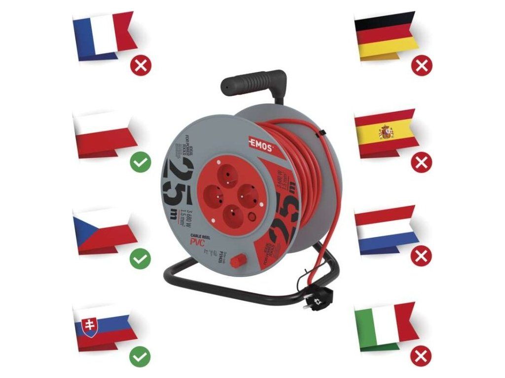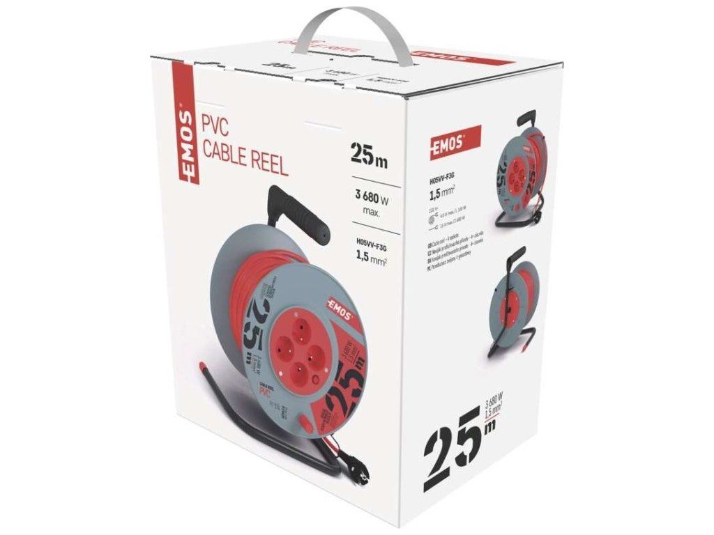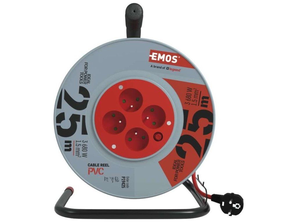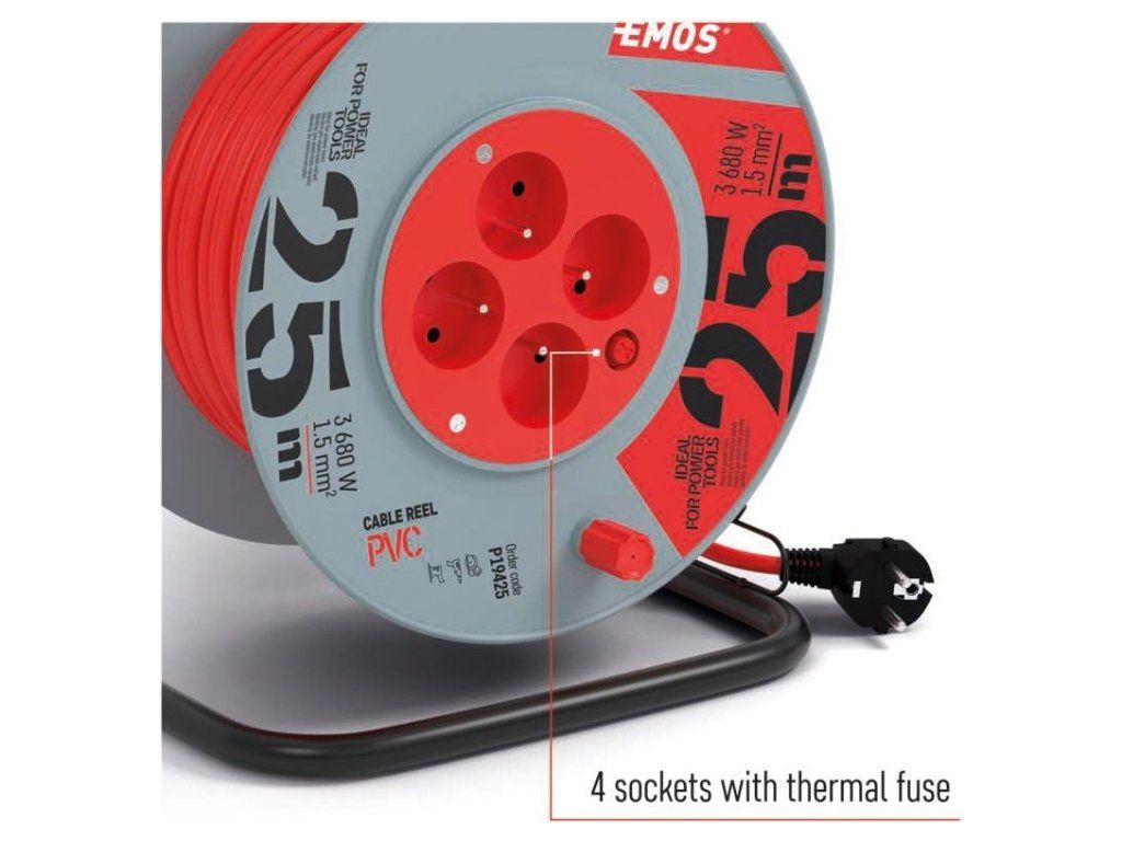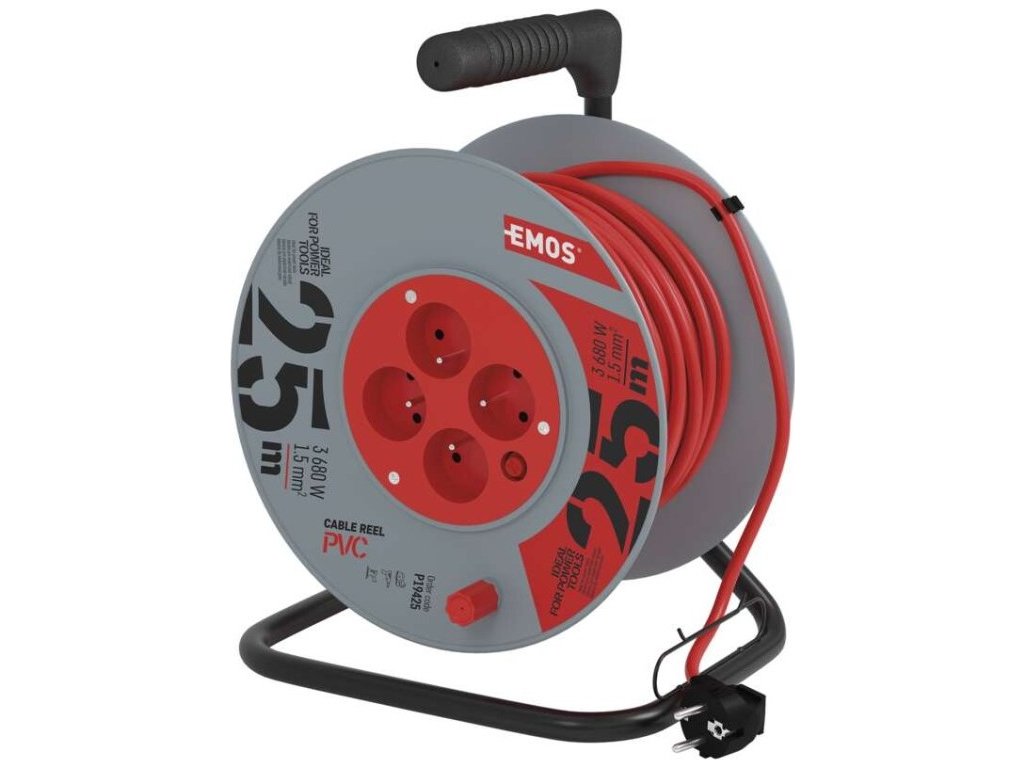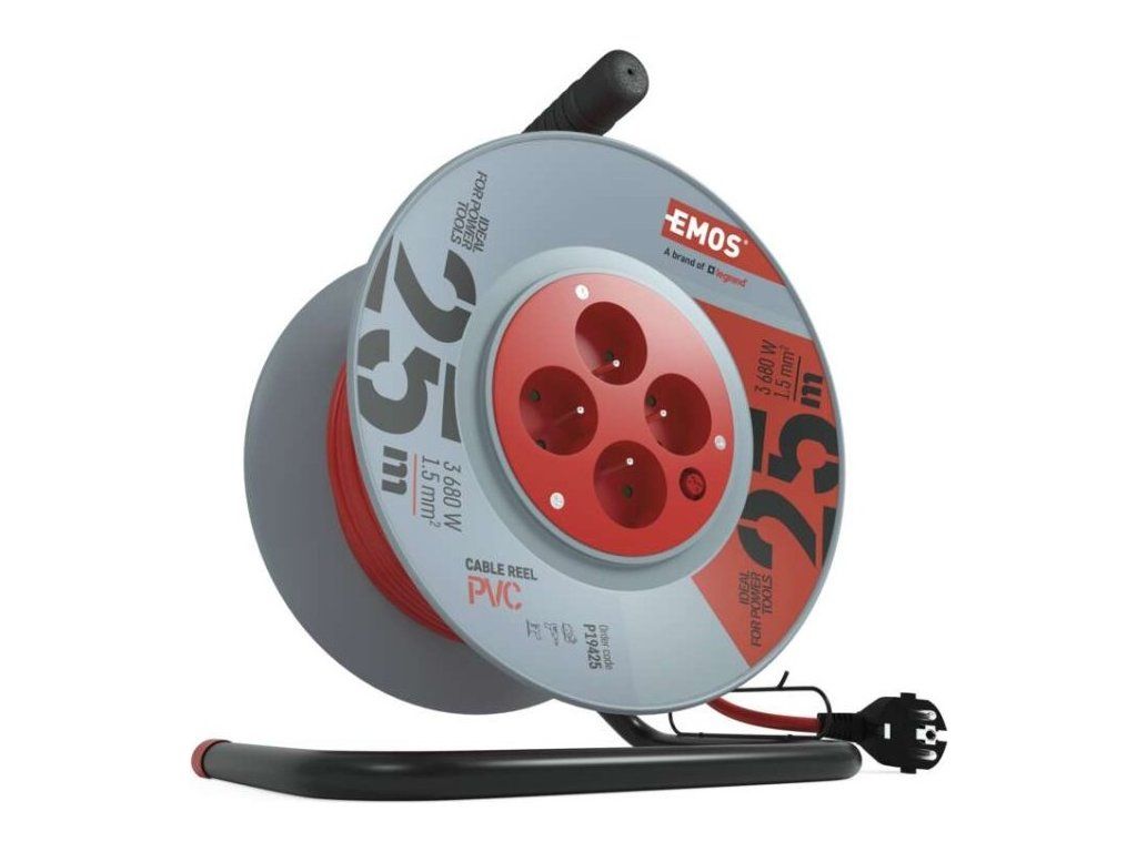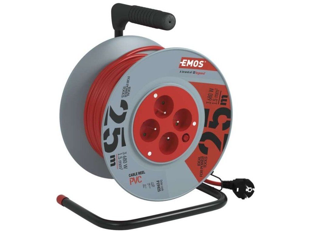 Prodlužovací kabel na bubnu 25 m / 4 zásuvky / červený / PVC / 230 V / 1,5 mm2