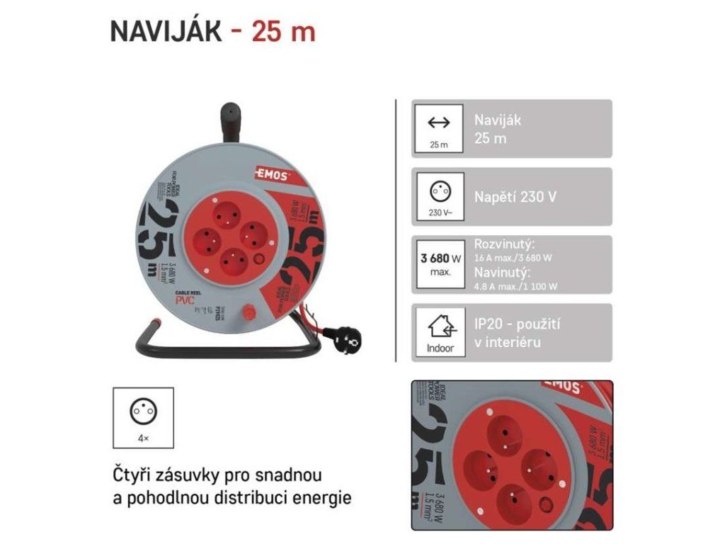 | Max. zatížení rozvinutého: | 16 A max./3 680 W |