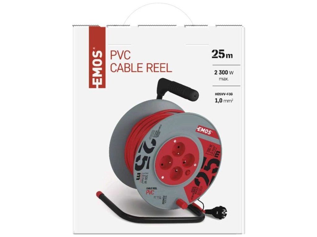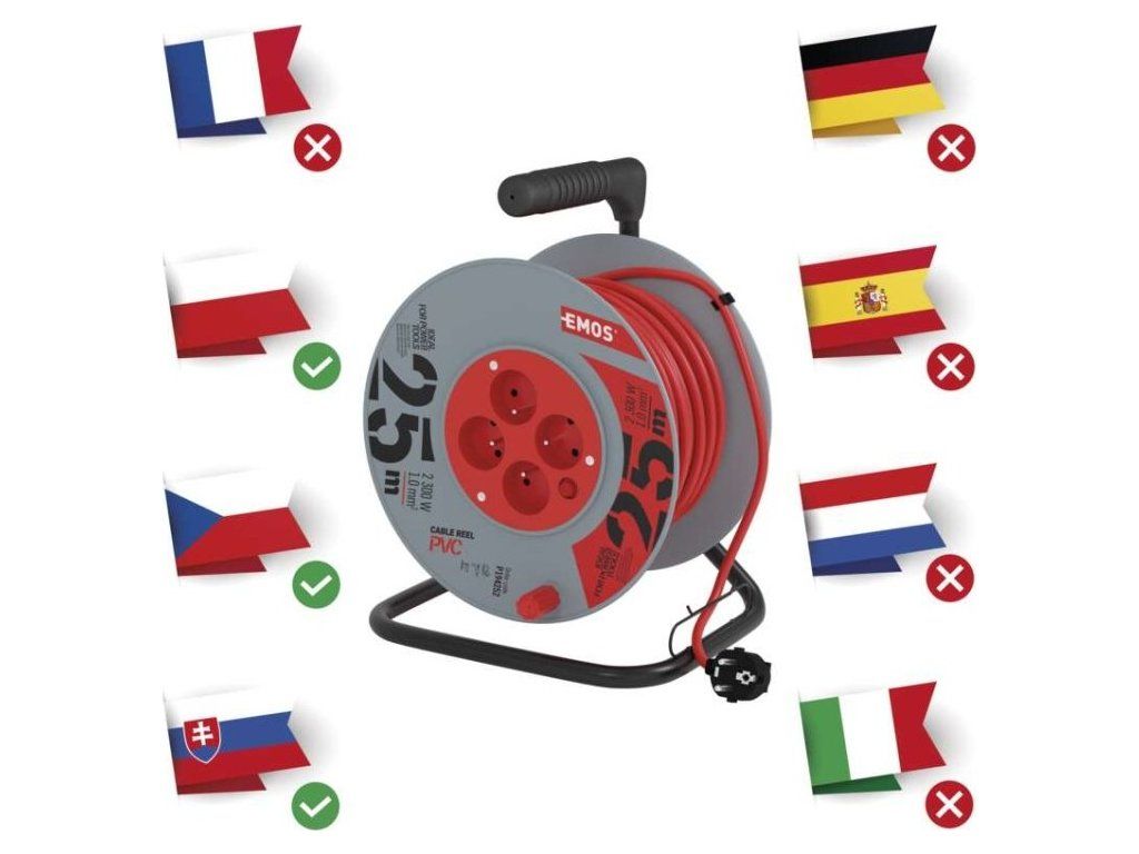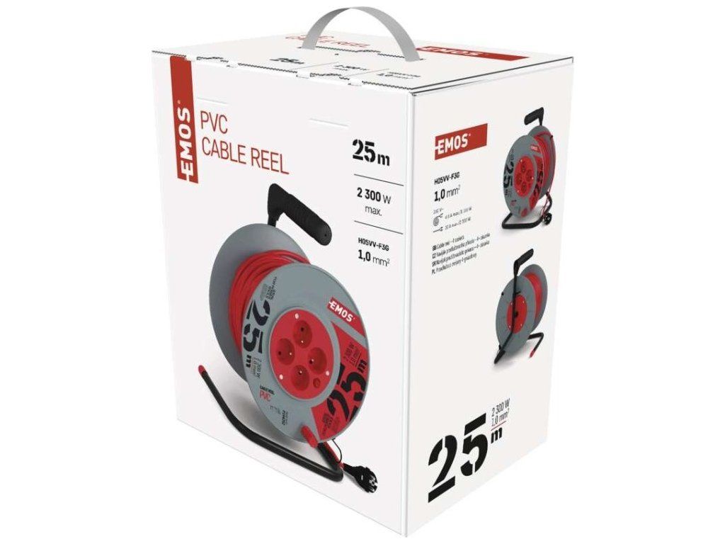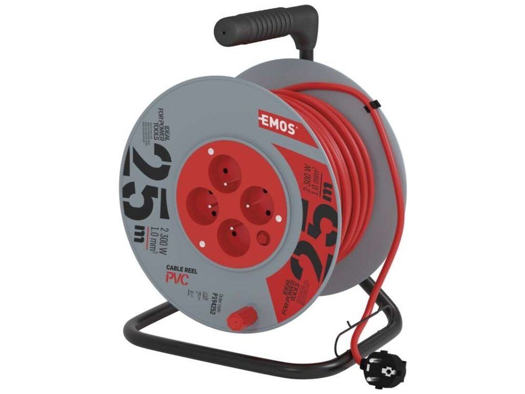 Prodlužovací kabel na bubnu 25 m / 4 zásuvky / červený / PVC / 230 V / 1 mm2