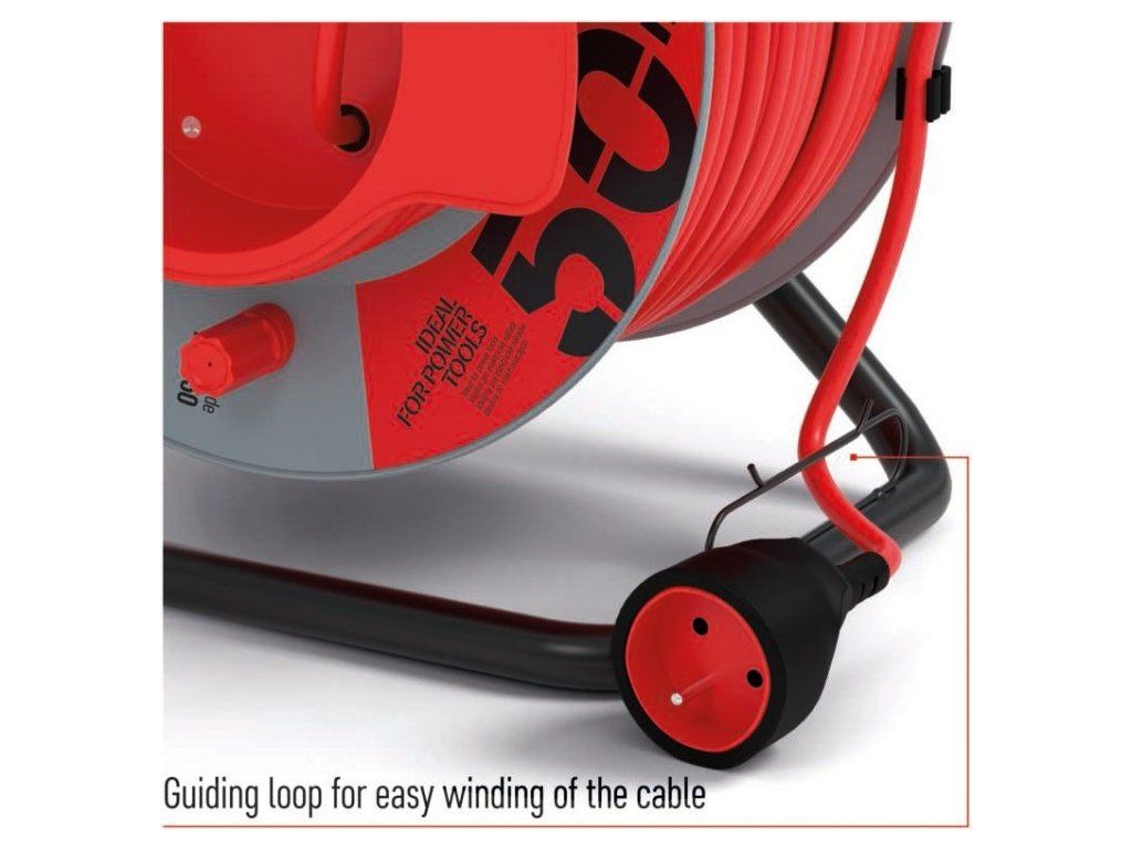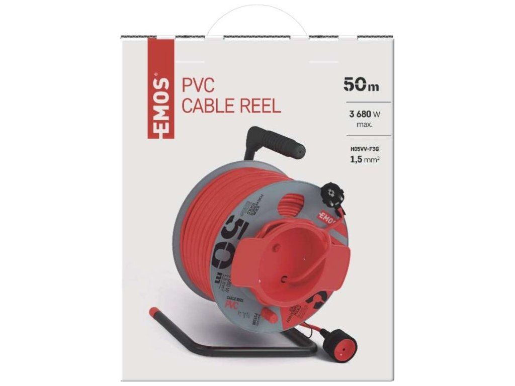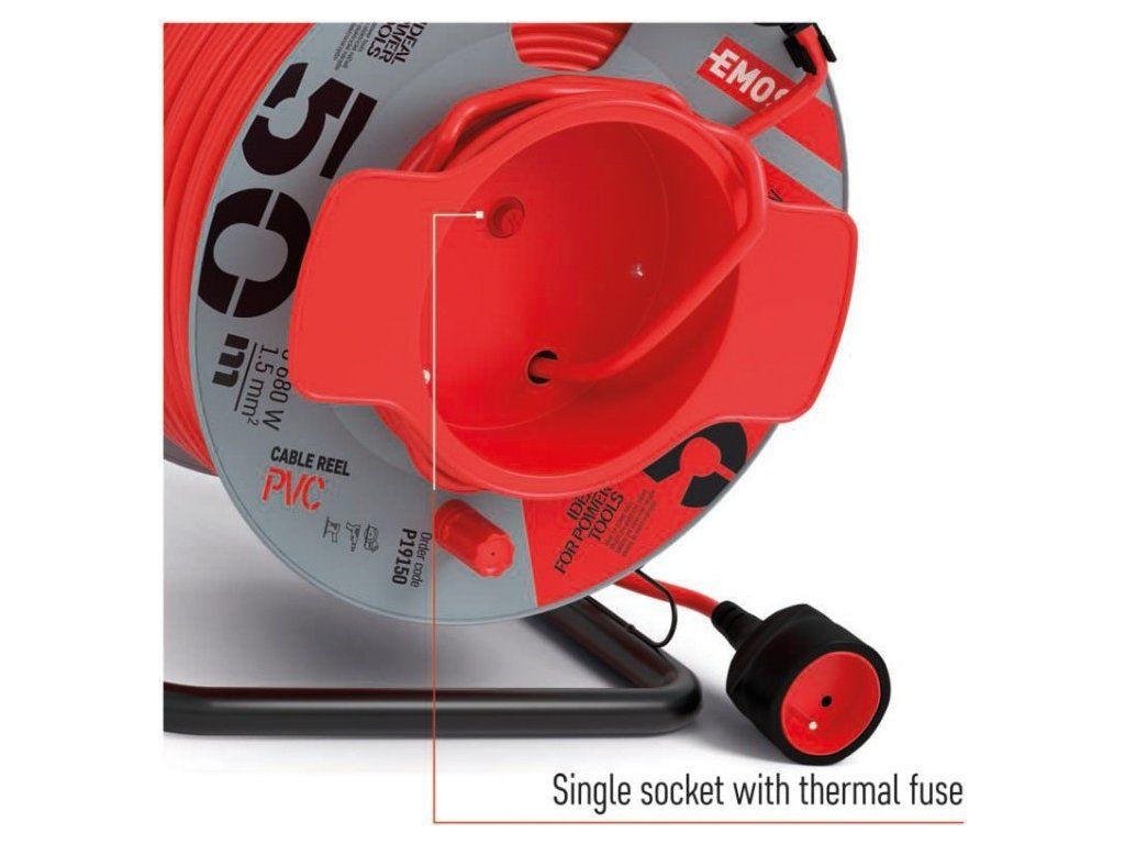 Prodlužovací kabel na bubnu 50 m / 1 zásuvka / červený / PVC / 230 V / 1,5 mm2