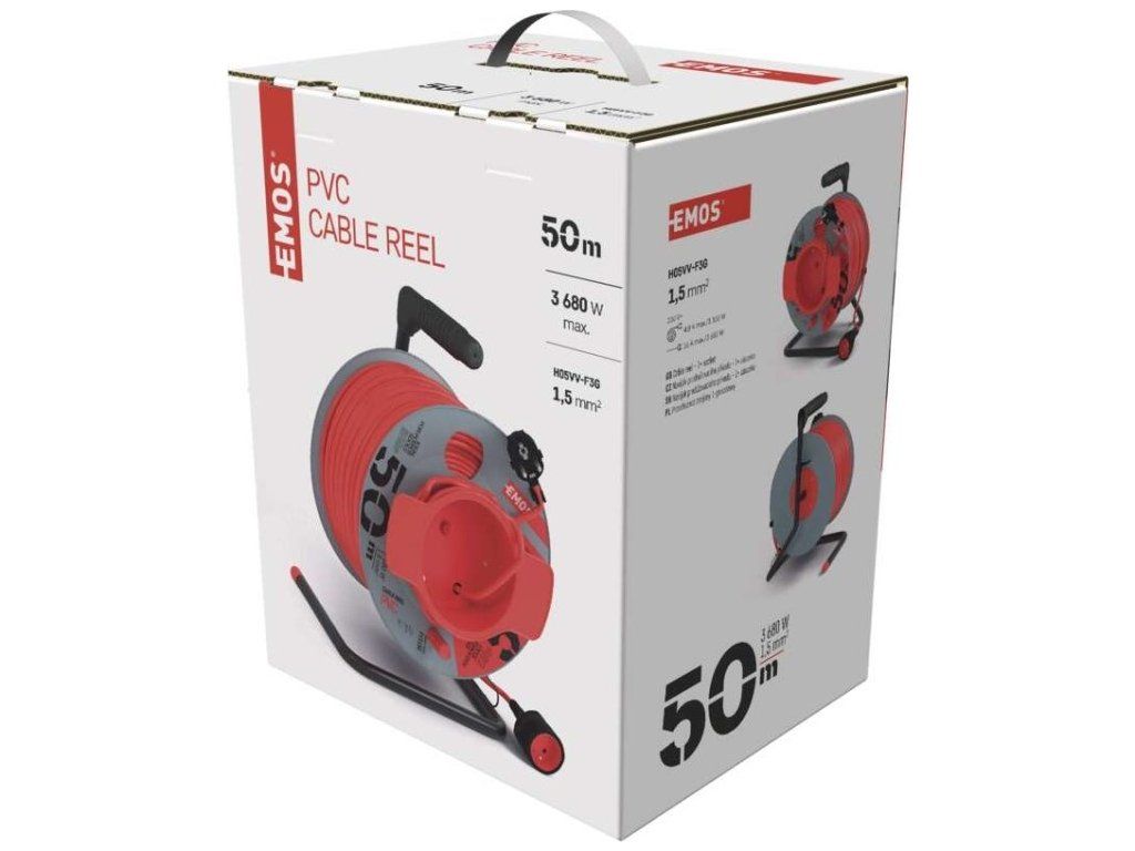 Oranžový prodlužovací kabel na bubnu - spojka s délkou 50 m, průřezem vodiče 1,5 mm2 a tepelnou pojistkou. Vhodný pro maximální zátěž 16 A max. / 3680 W při plně rozvinutém stavu a 4,8 A max. / 1100 W navinutý. Kvalitní naviják prodlužovacího přívodu. Je ideální pro prodloužení napájecí sítě 230V~. Jeho výhodou je pohodlná manipulace díky bubnu.