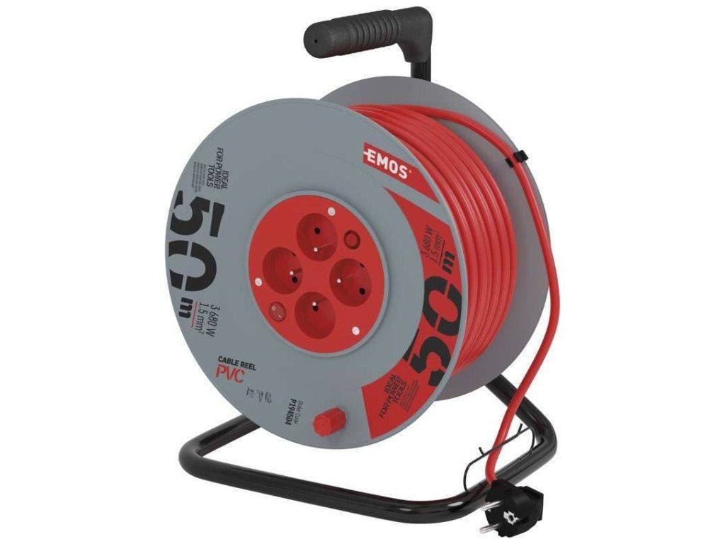 Prodlužovací kabel na bubnu 50 m / 4 zás. / s vypínačem / červený / PVC / 230V / 1,5 mm2