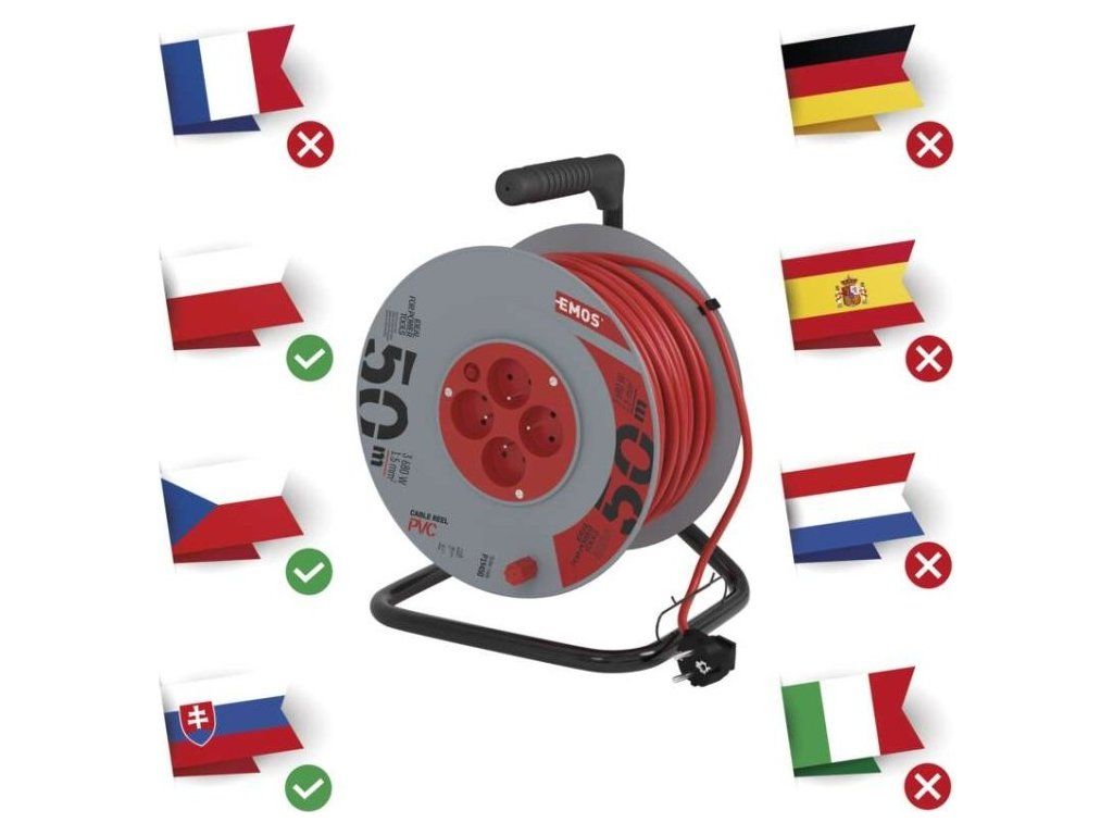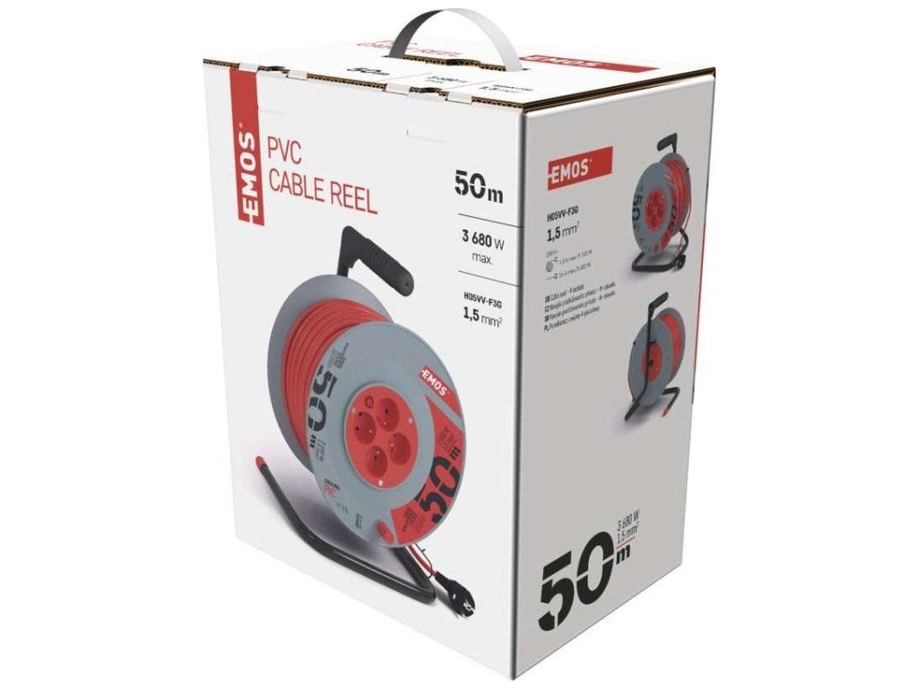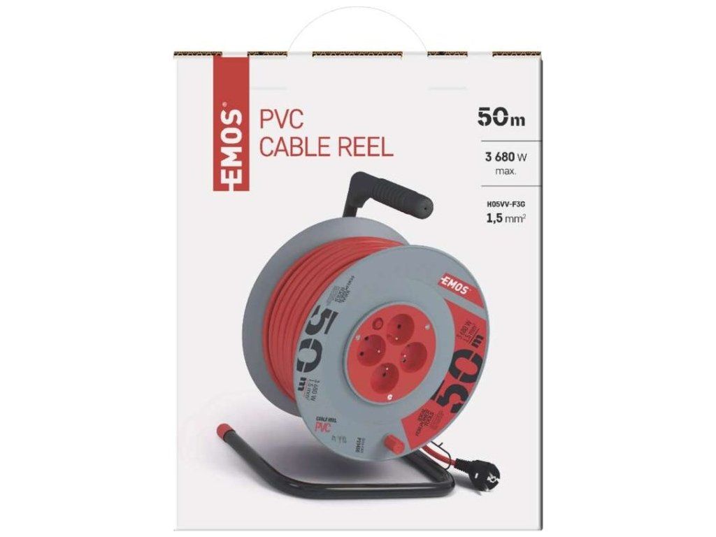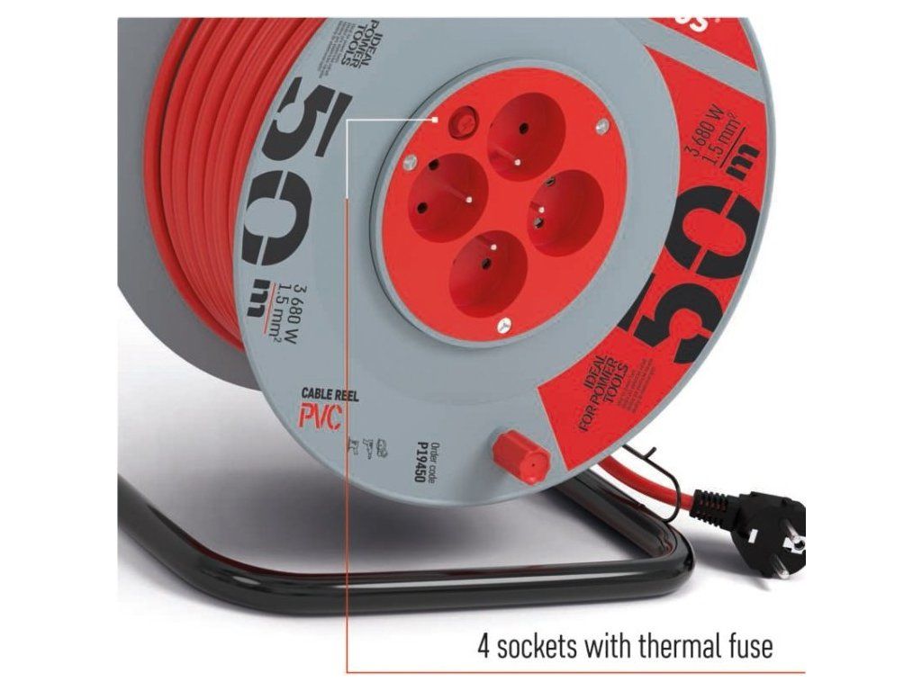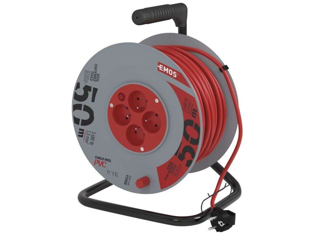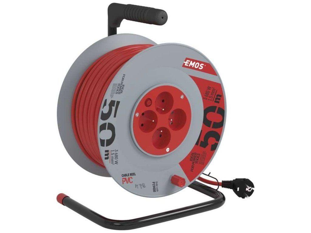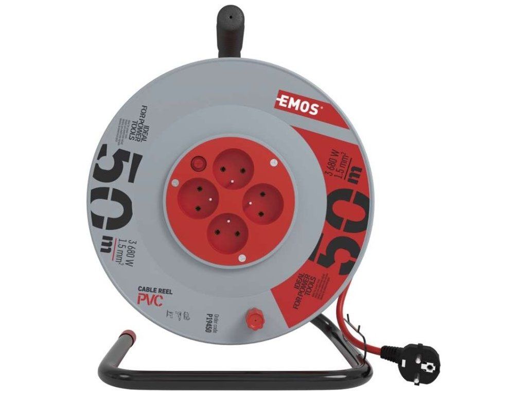 Prodlužovací kabel na bubnu 50 m / 4 zásuvky / červený / PVC / 230 V / 1,5 mm2