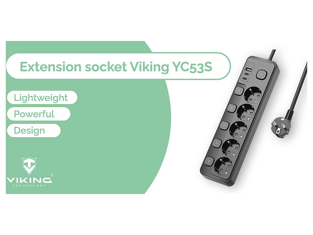Prodlužovací zásuvka Viking YC53S/Output:5xAC,1xUSB-A,2xUSB-C/jednotlivá tlačítka ON/OFF/1,5m kabel
