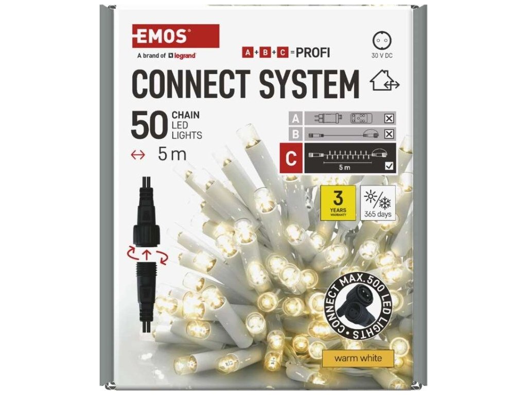 Profi LED spojovací řetěz bílý, 5 m, venkovní i vnitřní, teplá bílá