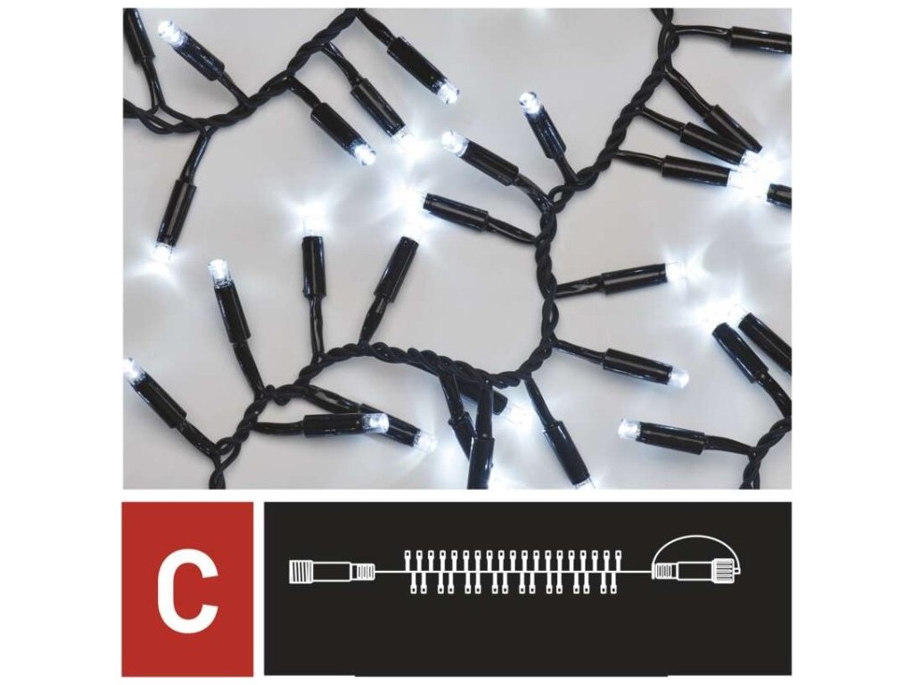 Profi LED spojovací řetěz černý – ježek, 3 m, venkovní i vnitřní, studená bílá