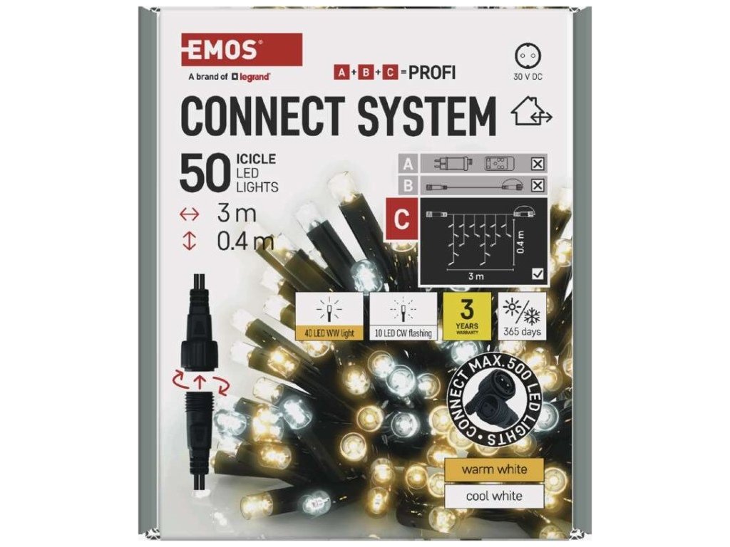 Profi LED spojovací řetěz problikávající – rampouchy, 3 m, venkovní, teplá/studená bílá