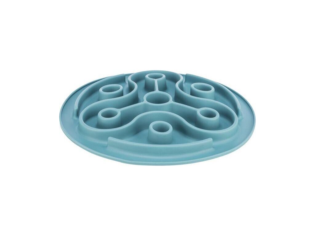 Protihltací talíř Slow feeding TRIANGL, k pomalému krmení, TPE, o 28 cm, modrá