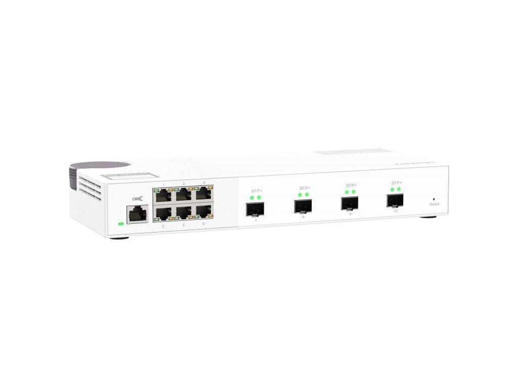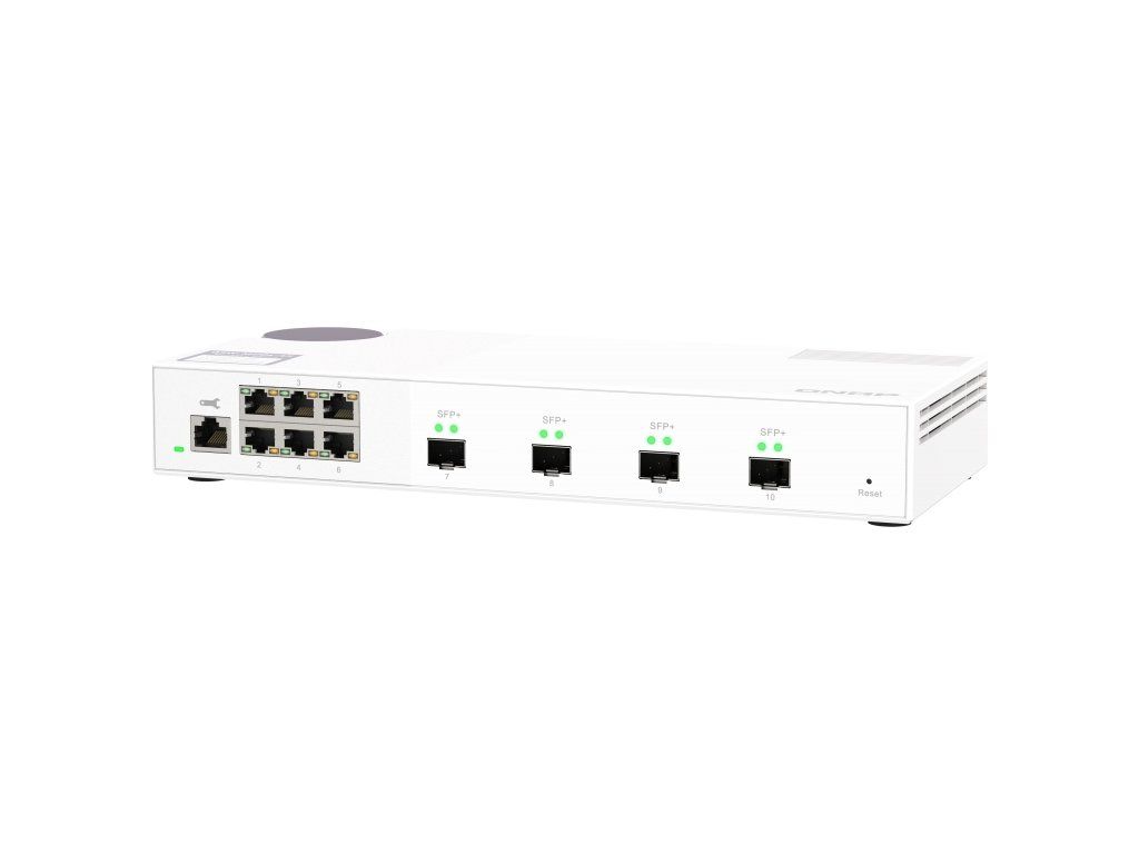 Zařízení QSW-M2106-4S je webově řízený přepínač (switch) úrovně 2 se čtyřmi porty 10GbE SFP+ a šesti porty 2,5 Gigabit. Zařízení QSW-M2106-4S podporuje přepínání a správu sítě úrovně 2 (L2) prostřednictvím uživatelsky vstřícného webového rozhraní, nabízí flexibilní nasazení v hybridních vysokorychlostních síťových prostředích a poskytuje řešení pro správu sítě na základní úrovni, které zvládnou používat I ti, kdo nepatří mezi profesionály v oboru IT. Díky vysokému výkonu, uživatelsky přívětivé správě a stolnímu provedení umožňuje zařízení QSW-M2106-4S nákladově efektivní upgrade na síť 2,5GbE nebo 10GbE při optimalizaci šířky pásma a zajištění bezpečné údržby sítě.