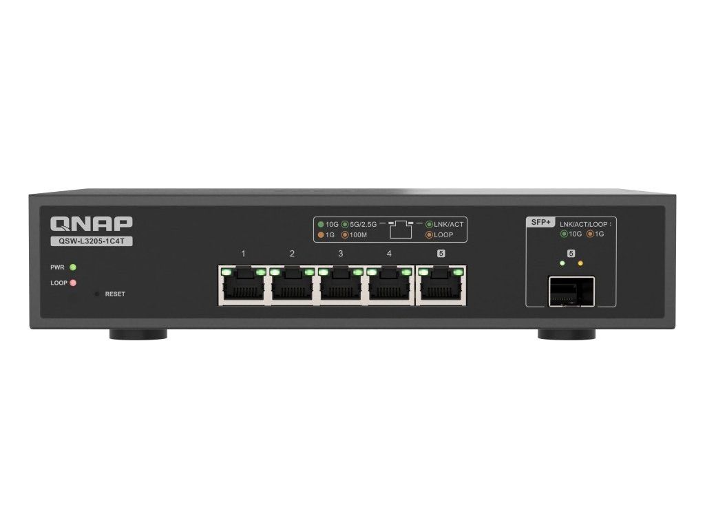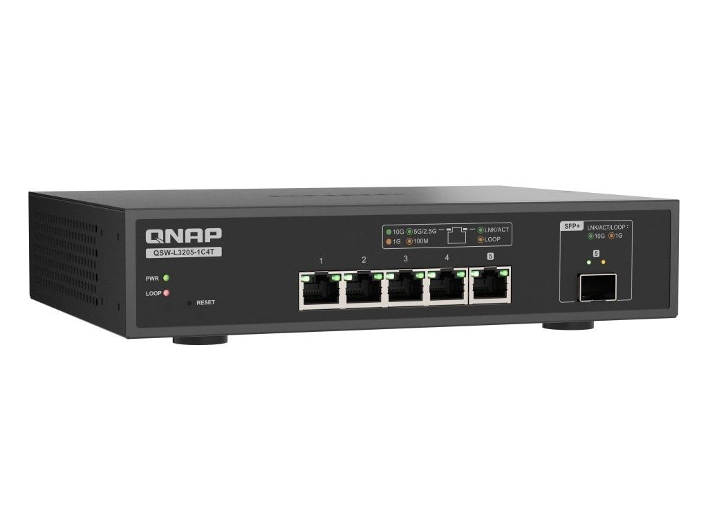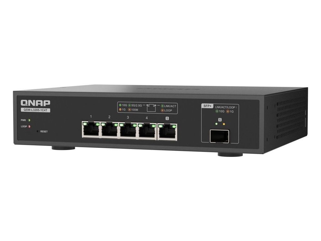 QNAP switch QSW-L3205-1C4T (4x 10GbE port, 1x 10G SFP+/NBASE-T Combo, Lite Managed)