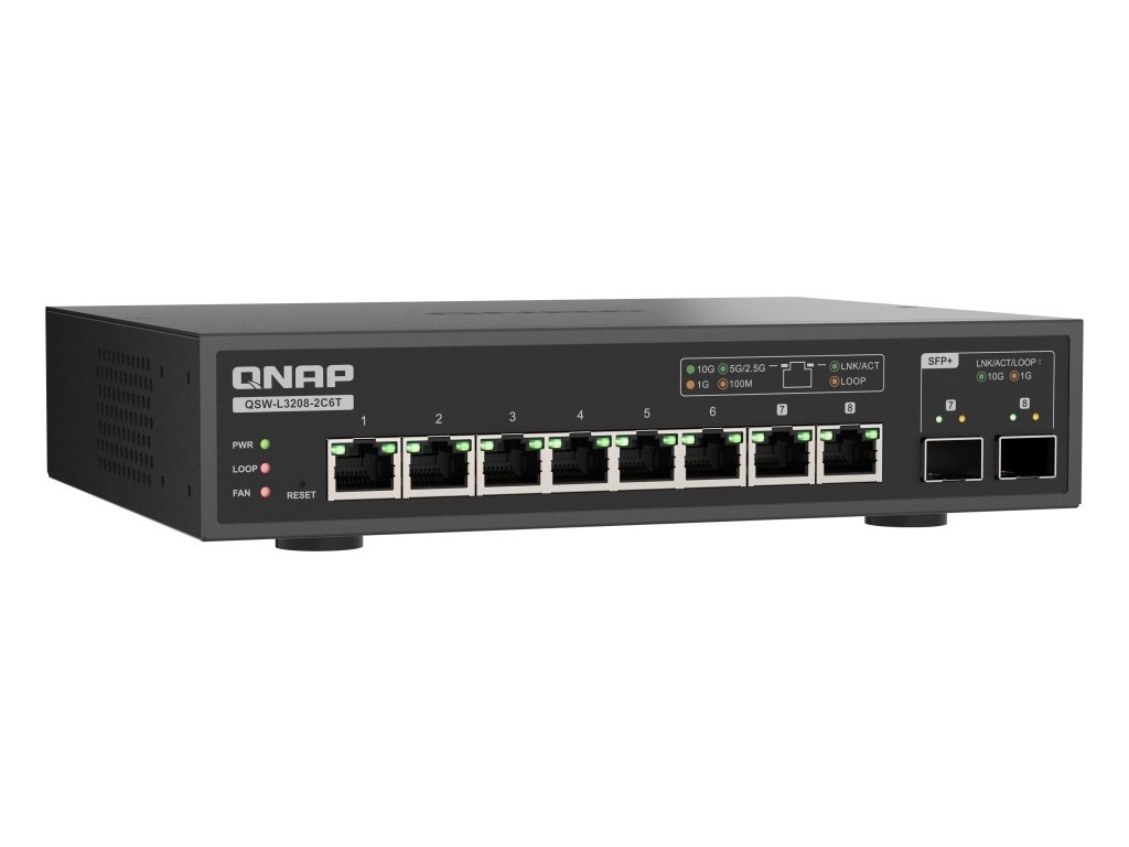 QNAP switch QSW-L3208-2C6T (6x 10GbE port, 2x 10G SFP+/NBASE-T Combo, Lite Managed)