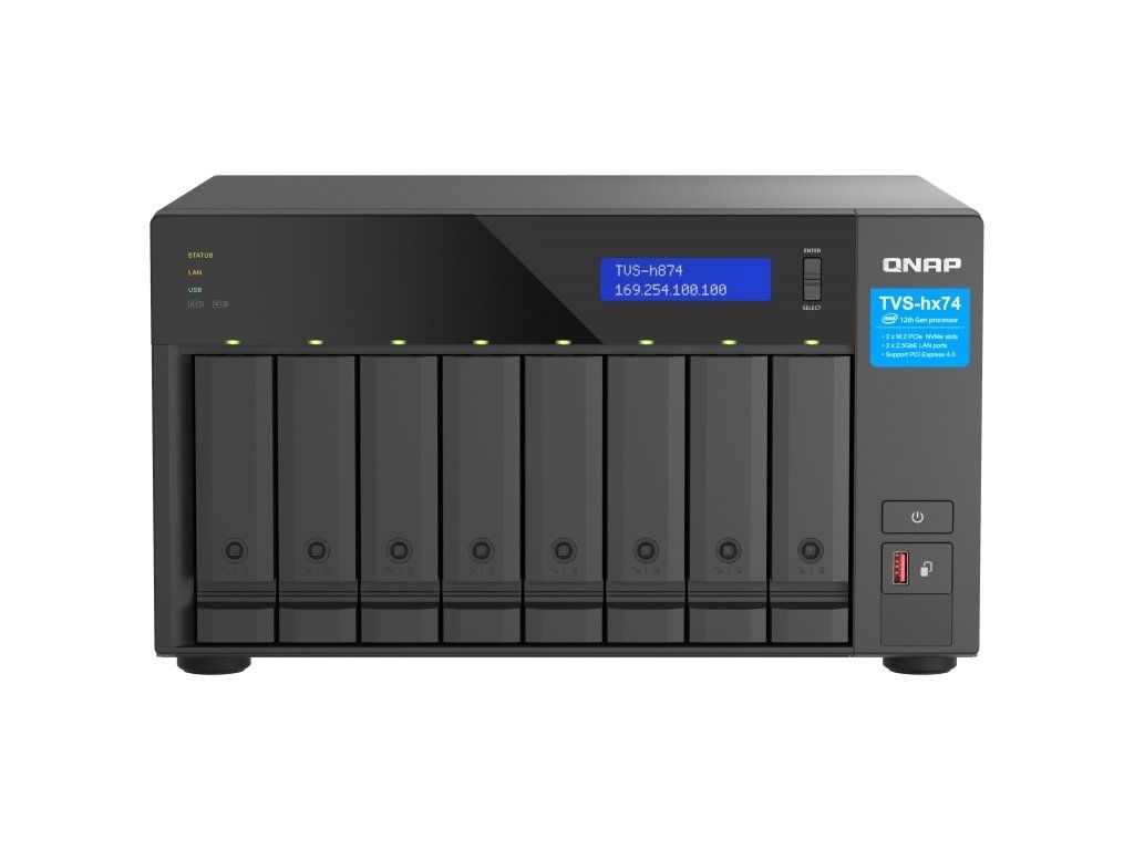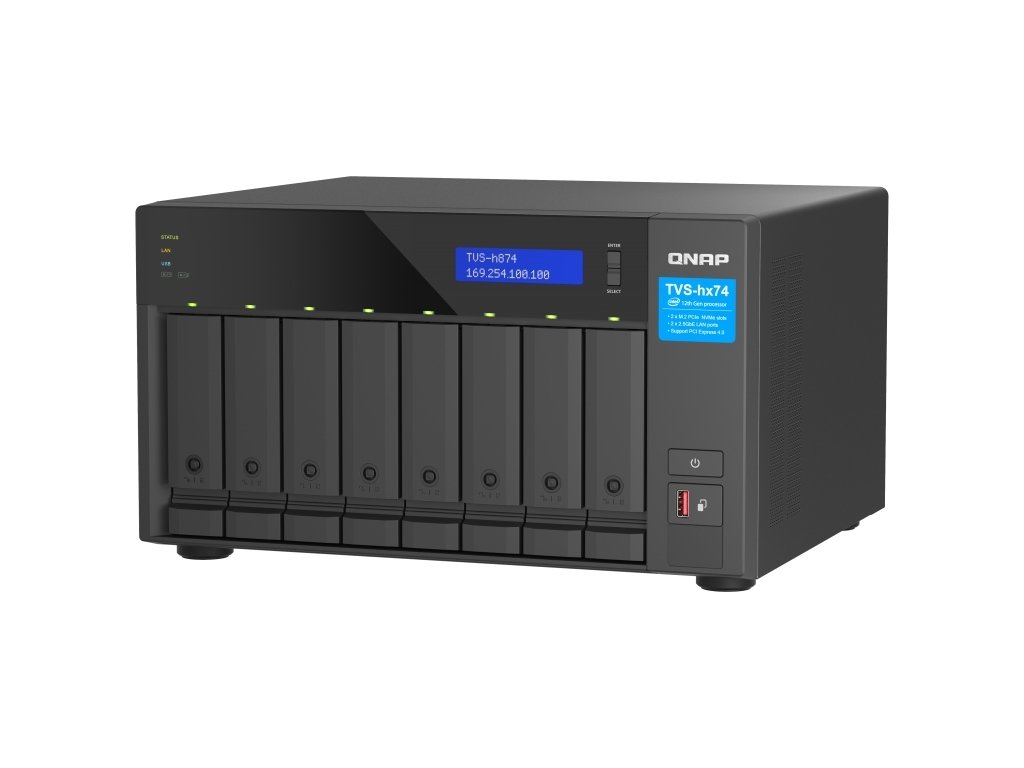QNAP TVS-h874-i5-32G (6core 4,4GHz, ZFS, 32GB RAM, 8x SATA, 2x M.2 NVMe, 2x PCIe, 2x 2,5GbE, HDMI)
