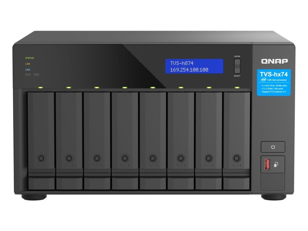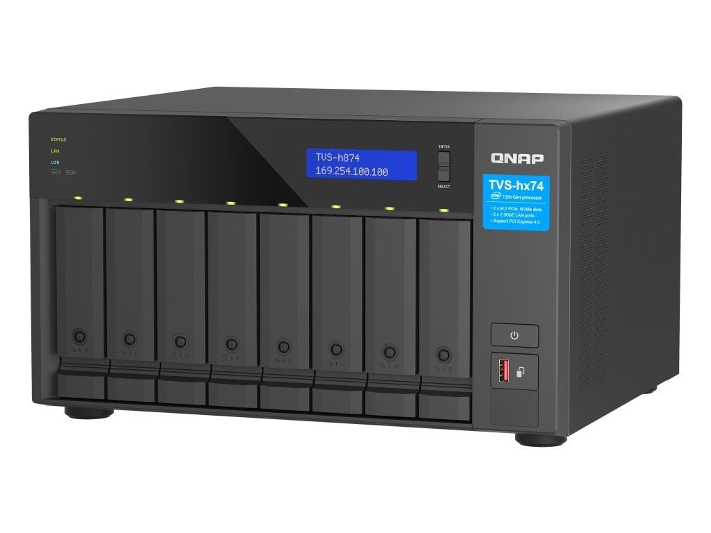 QNAP TVS-h874-i7-32G (12core (i7), ZFS, 32GB RAM, 8x SATA, 2x M.2 NVMe, 2x PCIe, 2x 2,5GbE, HDMI 4K)
