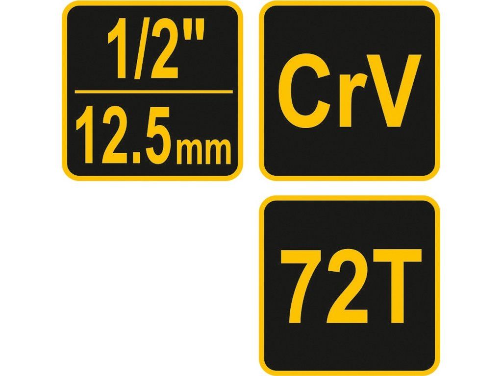 Ráčna je vyrobena z CrV oceli, zaručující její odolnost při intenzivní práci.