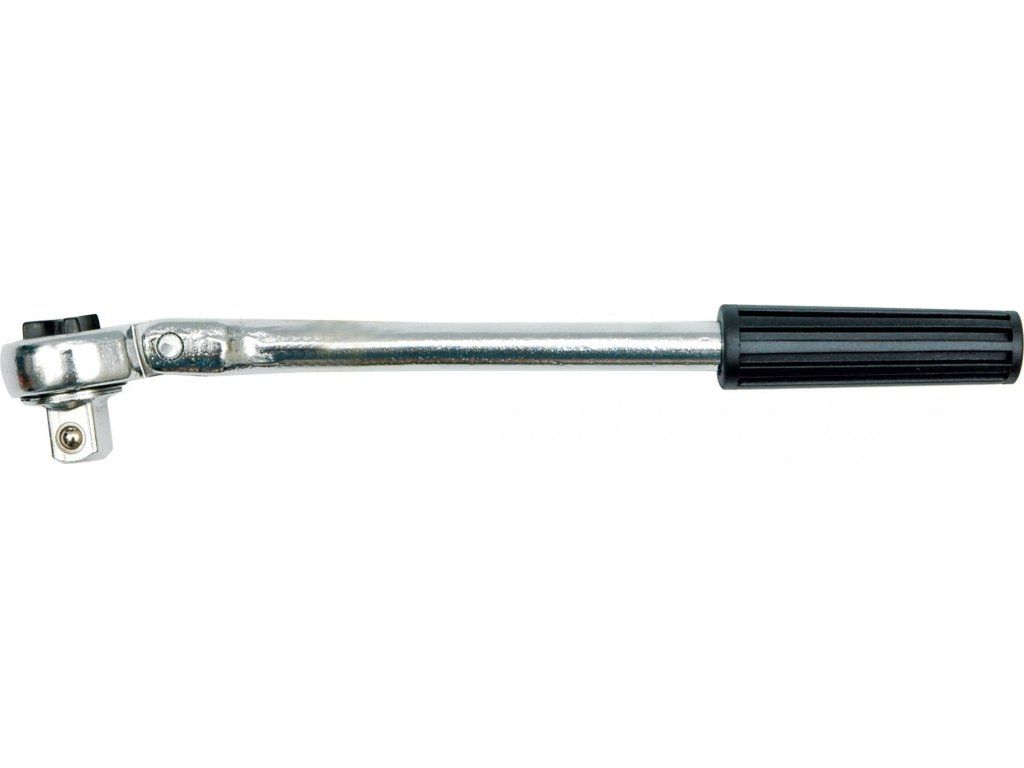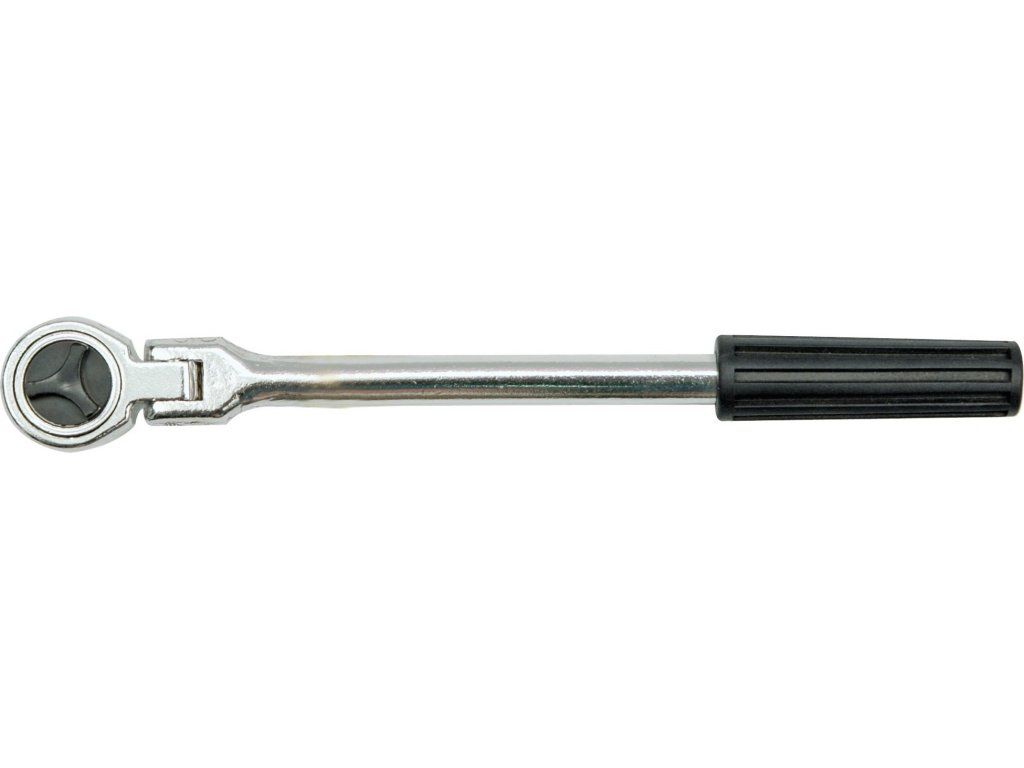Hlava a tělo této ráčny jsou spojeny kloubem, díky kterému je vhodná pro použití na těžko dostupných místech. Povrch je chráněn vrstvou chromu. Rukojeť je z plastu.