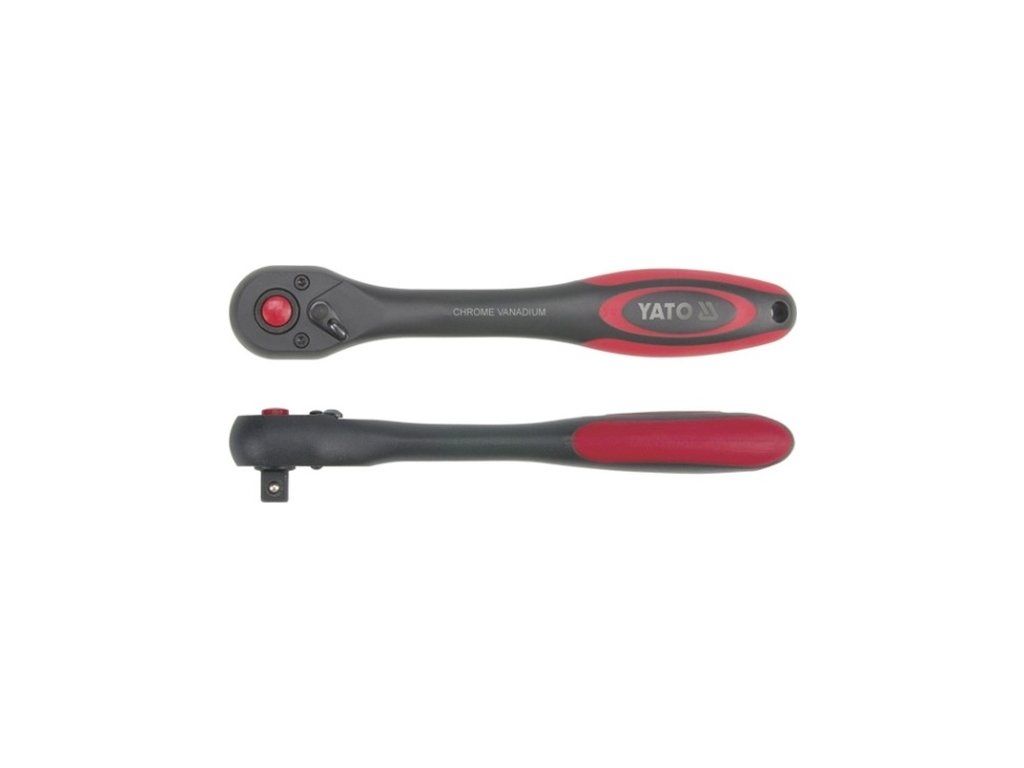 Ráčna s plastovou rukojetí 1/4"(6,3mm) s přepínací páčkou, délka 144mm, ráčnový mechanismus s 72 zubu, vyroben z kvalitní chromvanadiové slitiny oceli CrV6135 splňující normou DIN3122.