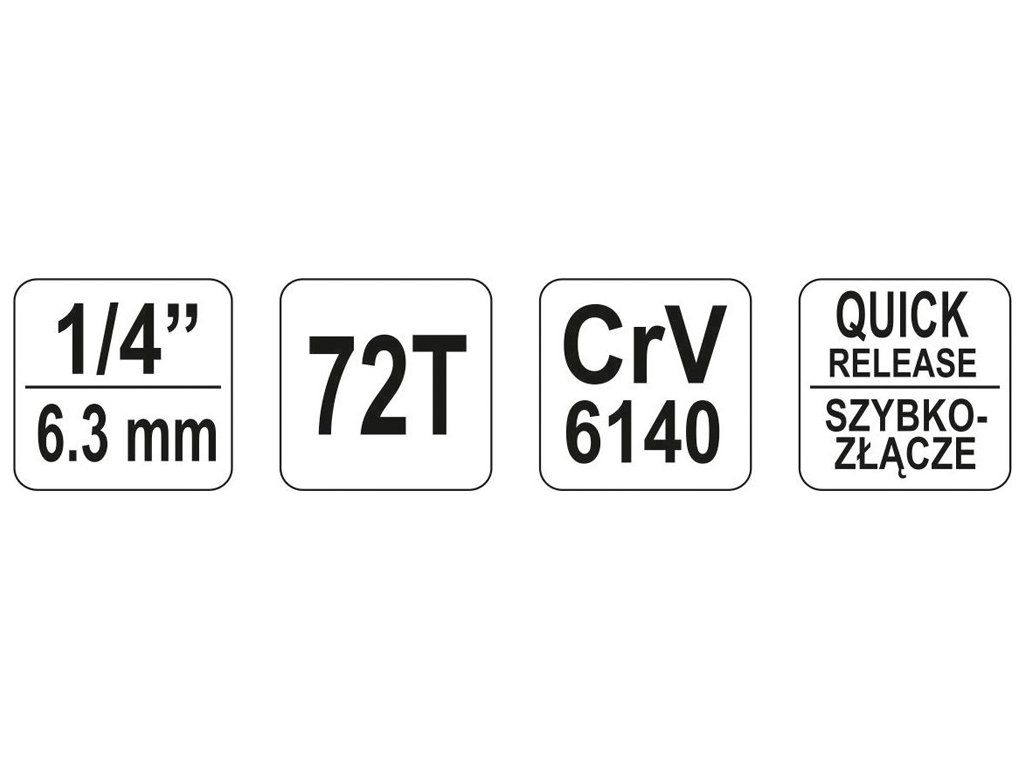Ráčna je opatřena přepínací páčkou a jemným chodem zajištěným 72 zubým mechanismem.