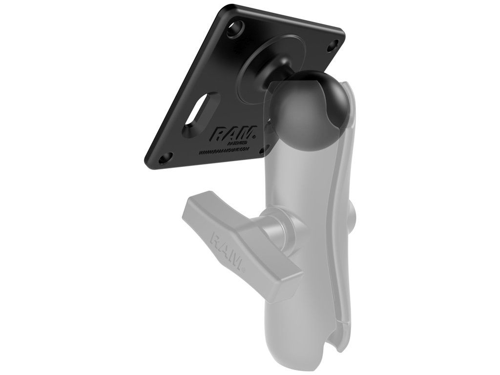 RAM-2461U držák VESA 75×75 mm s 1,5" čepem. Čtvercová destička držáku má rozměry 92×92 mm a obsahuje díry pro uchycení přístrojů s přípravou pro držák VESA 75×75 mm. Pryžový čep je umístěn 22 mm od středu jedné z hran.
