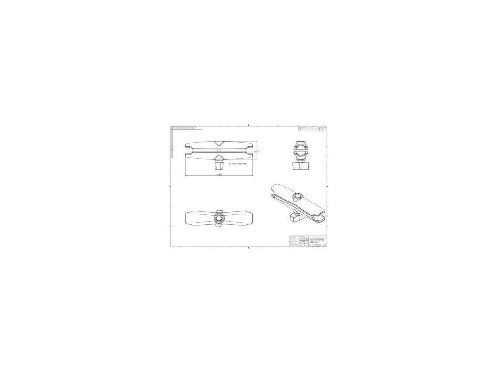 RAM-B-201U-C, dlouhé rameno se svorkami na obou koncích. Pružina a utahovací šroub na rameni umožňuje rychlé a velmi pevné připevnění na 1“ čepy.