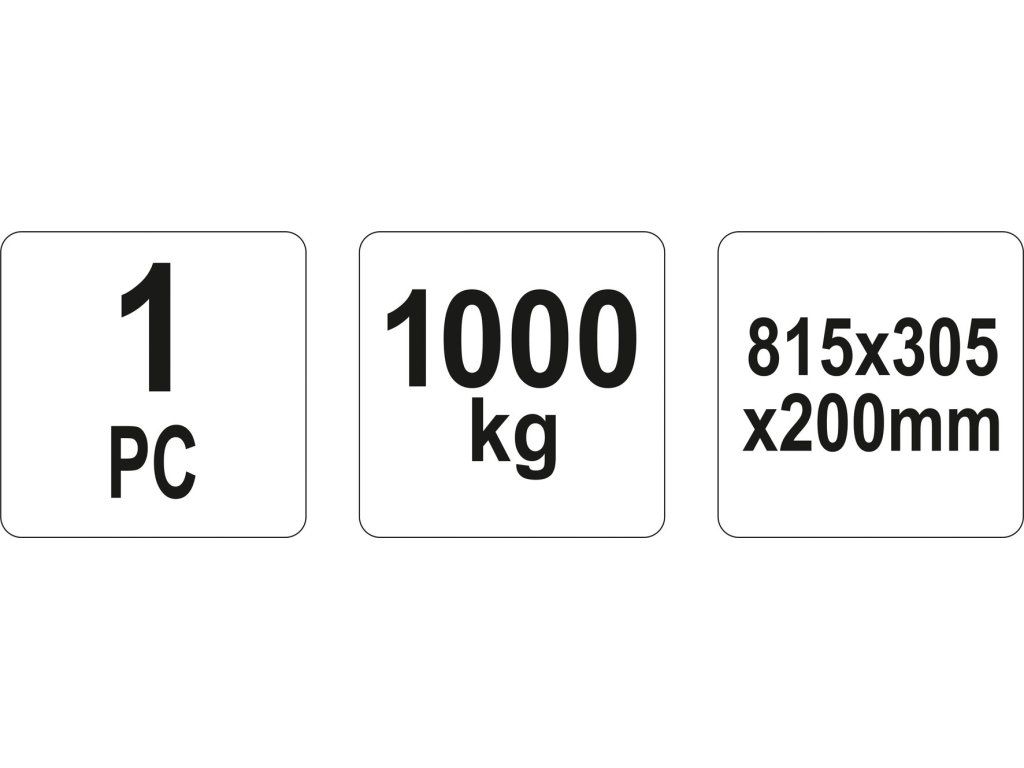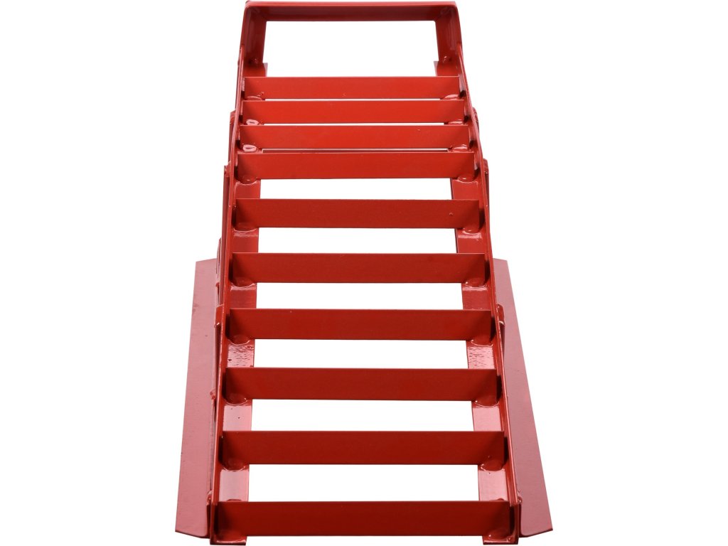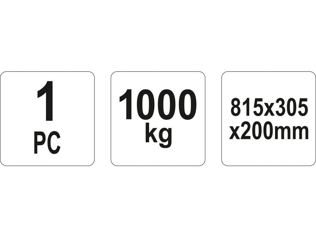 Rozměry nájezdu činí 815 x 200 x 305 mm. Maximální zatížení až 1000kg zajišťuje stabilní konstrukce z oceli, včetně hustě rozmístěných vzpěr a klínů.