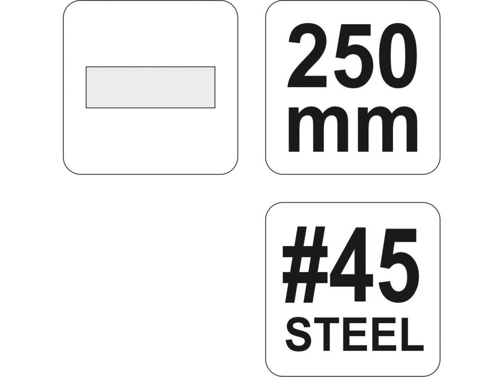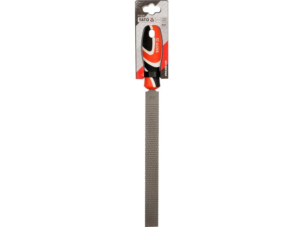 Rašple na dřevo, typ plochá, délka 250mm, sek o hrubosti 45 pro běžné obrábění dřeva, ergonomicky tvarovaná plastová rukojeť se závěsným okem.