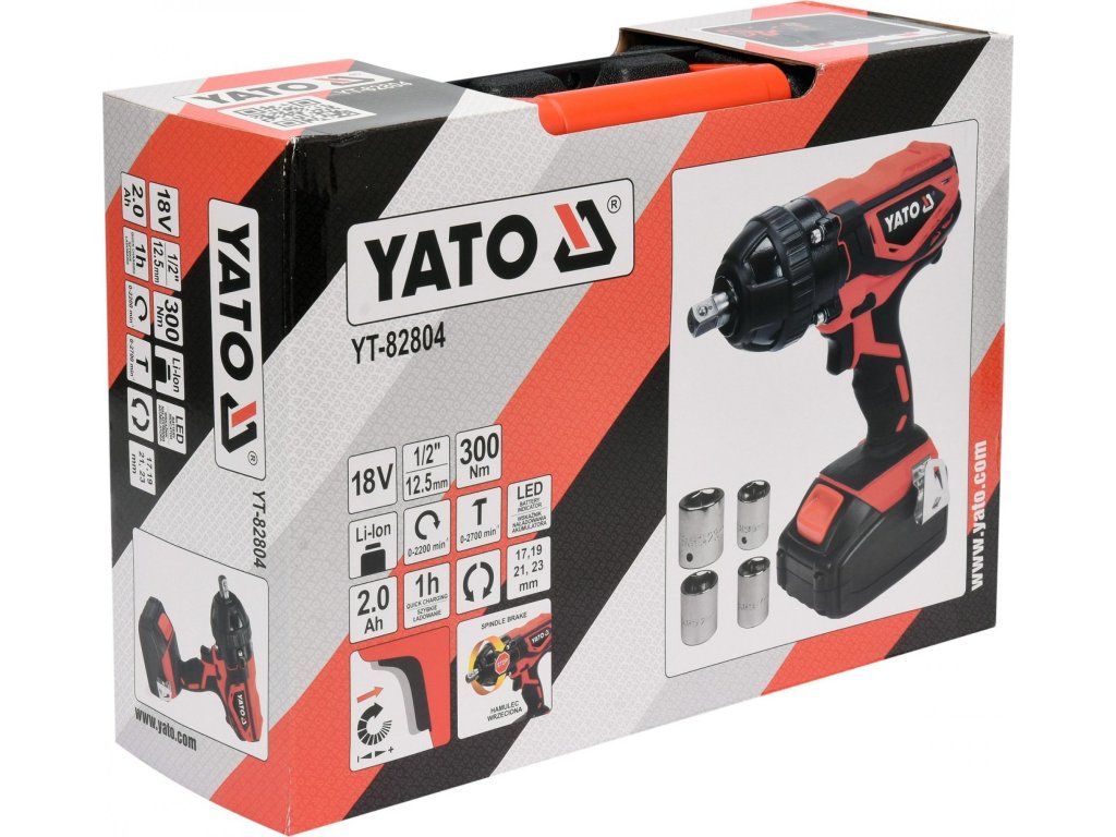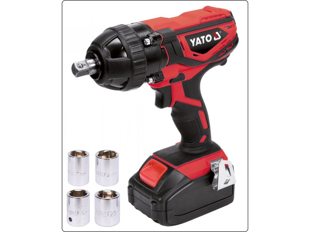 V sadě v uzavíratelném plastovém kufříku spolu s vyměnitelnými nástavci pro šrouby/matice 17, 19, 21 a 23 mm.