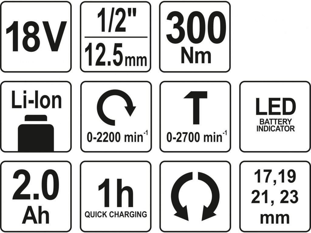 Vysoký točivý moment zajišťuje 18V Li-ion akumulátor, který je plně nabitý již po 1 hodině nabíjení.