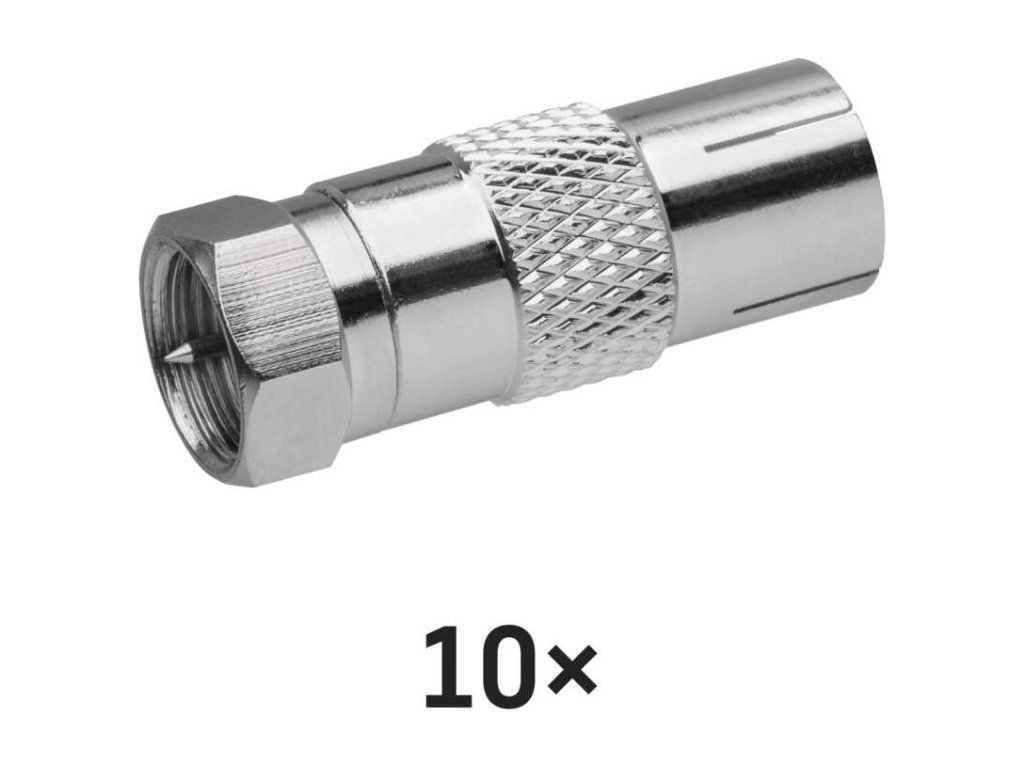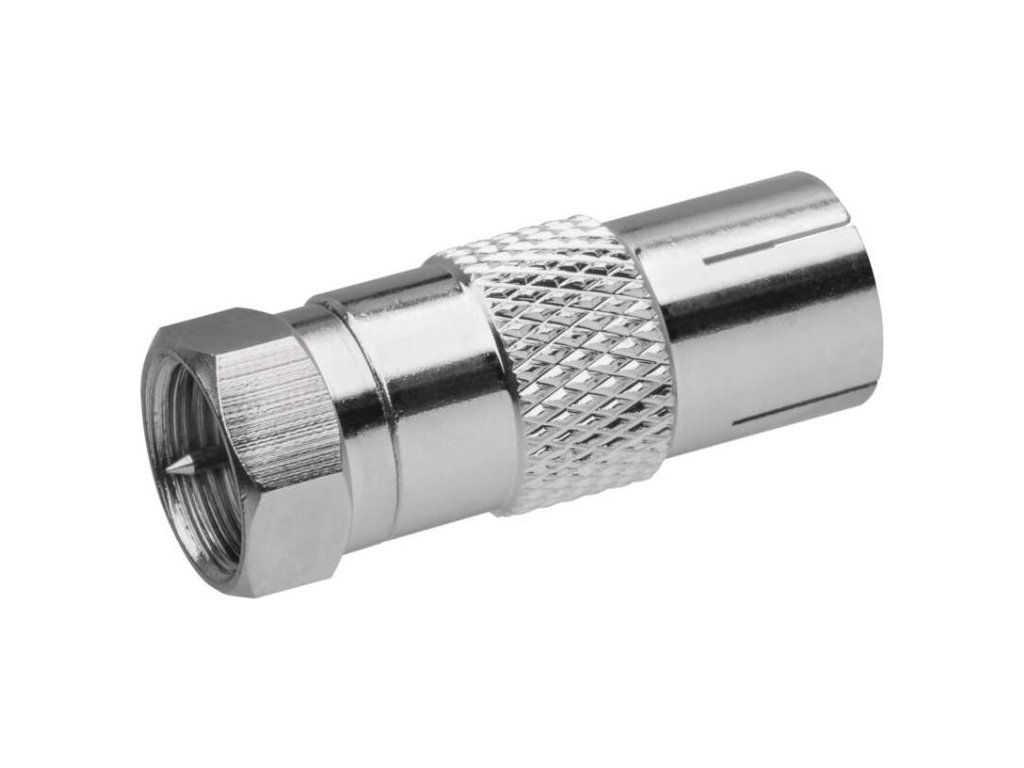 Redukce F-vidlice s IEC zásuvkou M5850. Redukce je určena k napojení na koaxiální kabel.