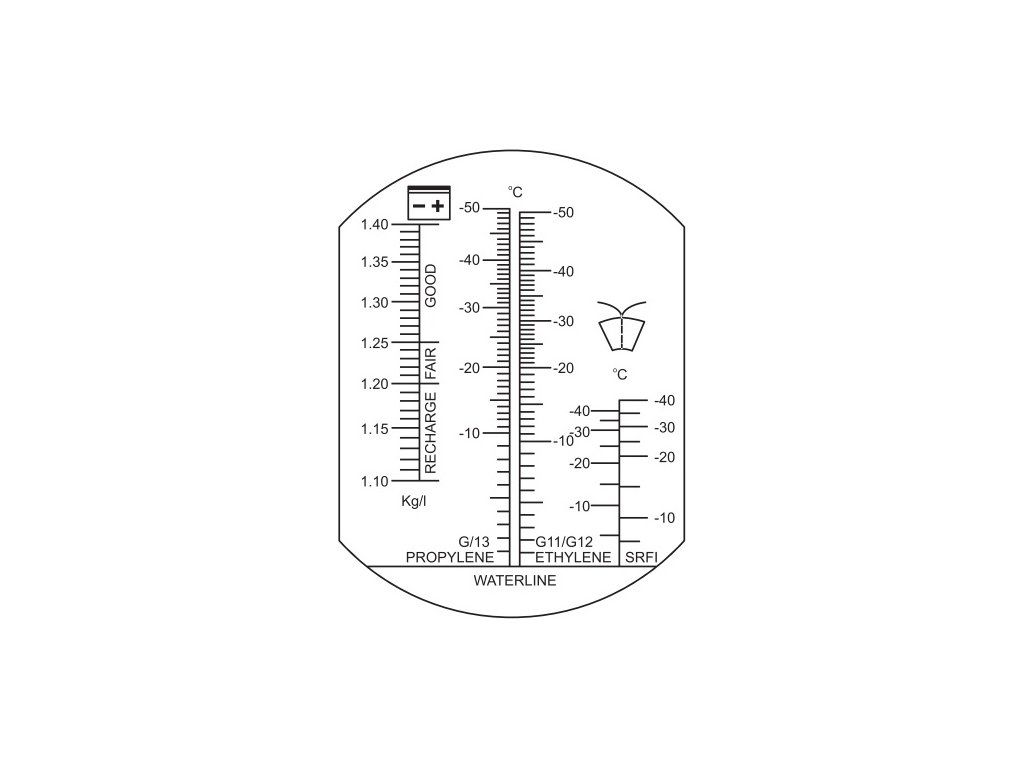 Refraktometrem je možné určit stupeň nabití akumulátoru, teplotu tuhnutí chladících kapalin na bázi propylenglykolu nebo etylalkoholu a taktéž teplotu tuhnutí kapalin do ostřikovačů.