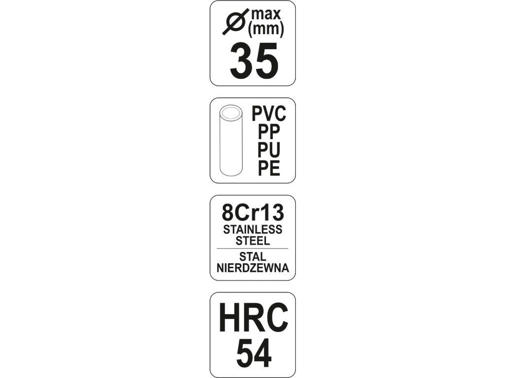 Instalatérské nůžky, pro řezání plastových trubek do průměru 35 mm.