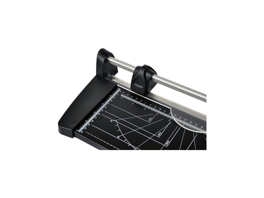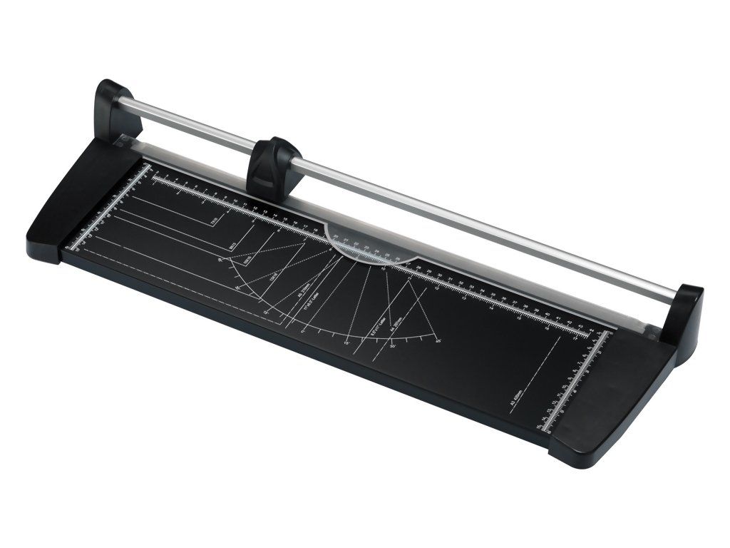 Model kolečkové řezačky KW Trio eco 450 je vhodný na papír do formátu A3 a poradí si až s 10 listy papíru zároveň. Na pracovní desce je přítlačné pravítko, pro fixaci řezaných listů na pracovní desce řezačky.