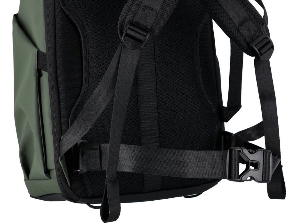Na boku batohu se nachází držák pro stativy nebo láhve, díky němuž lze často používané předměty přepravovat po ruce. K dispozici jsou také dva odnímatelné pásy, kterými lze například oblečení nebo jiné lehké předměty připevnit zvenčí na batoh.